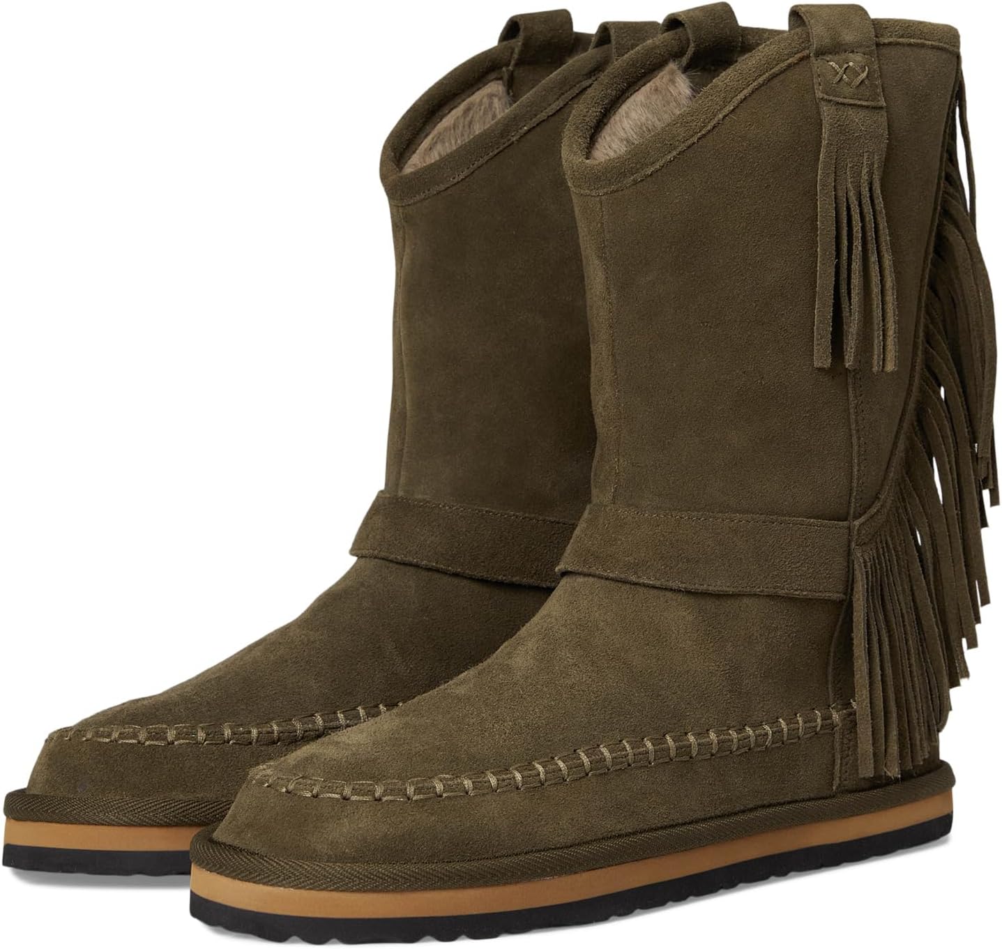 Ботинки Free People Women's Faye Fringe Pull-On Boots, Military Olive Suede
