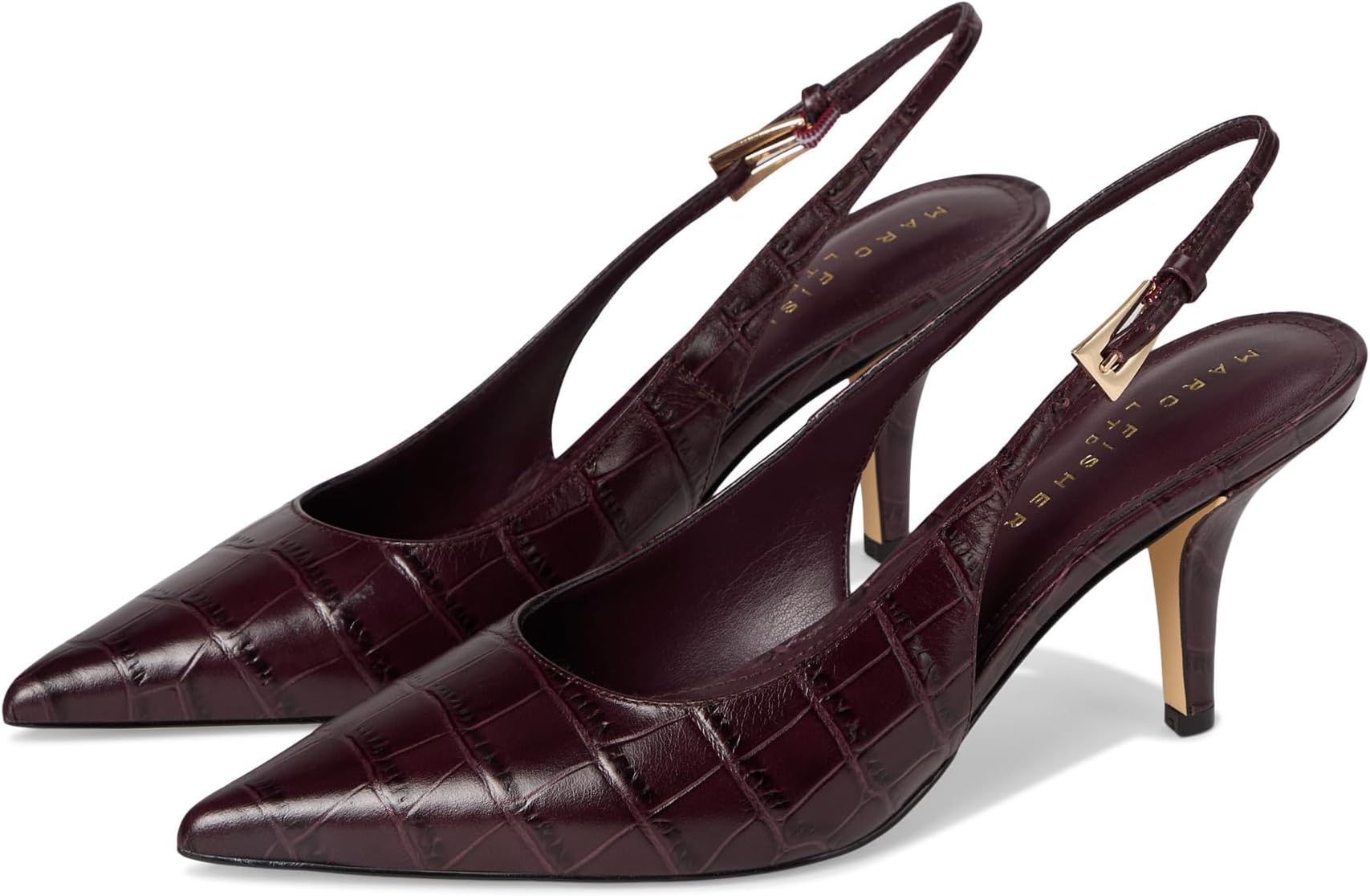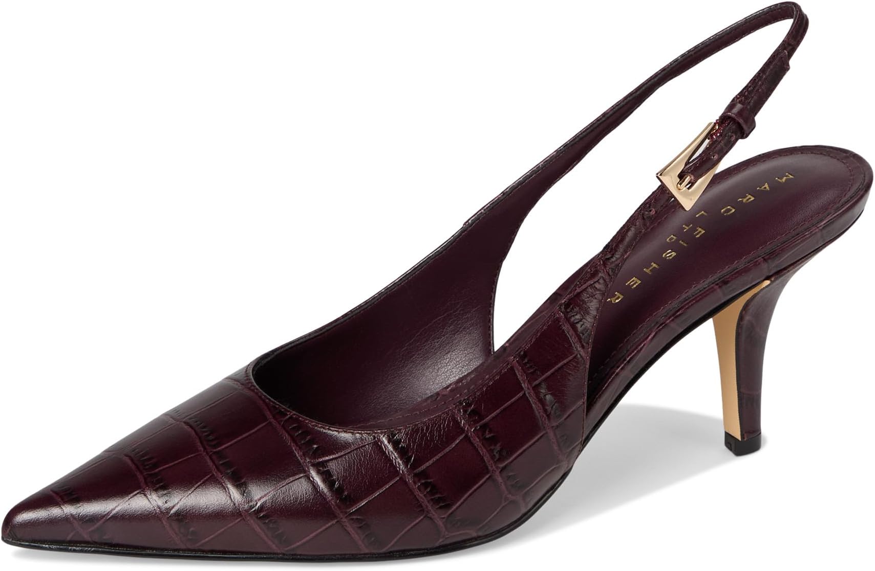 • Сохраняйте стиль в туфлях-слингбэках Marc Fisher LTD Dorie. Регулируемый ремешок с пряжкой, острый носок и высокая шпилька. Dorie — идеальный предмет гардероба!