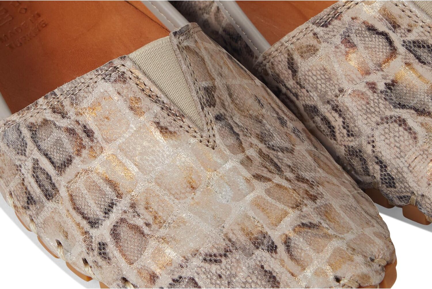 • Кроссовки Spring Step Kathaleta-spice сочетают в себе изысканный стиль и непринужденный комфорт. Эти элегантные слипоны изготовлены из высококачественной кожи с тиснением под крокодила и лёгким металлическим блеском. Они оснащены выемкой по центру и V-образной эластичной вставкой для удобства надевания и снятия. Благодаря крою с ручной строчкой Opanka, профилированной передней части стопы и съёмной мягкой стельке, они обеспечивают гибкость, воздухопроницаемость и поддержку в течение всего дня. Эти изысканные туфли на плоской подошве идеально подходят как для рабочих будней, так и для выходных. Они сочетают в себе мастерство ручной работы и современную простоту.