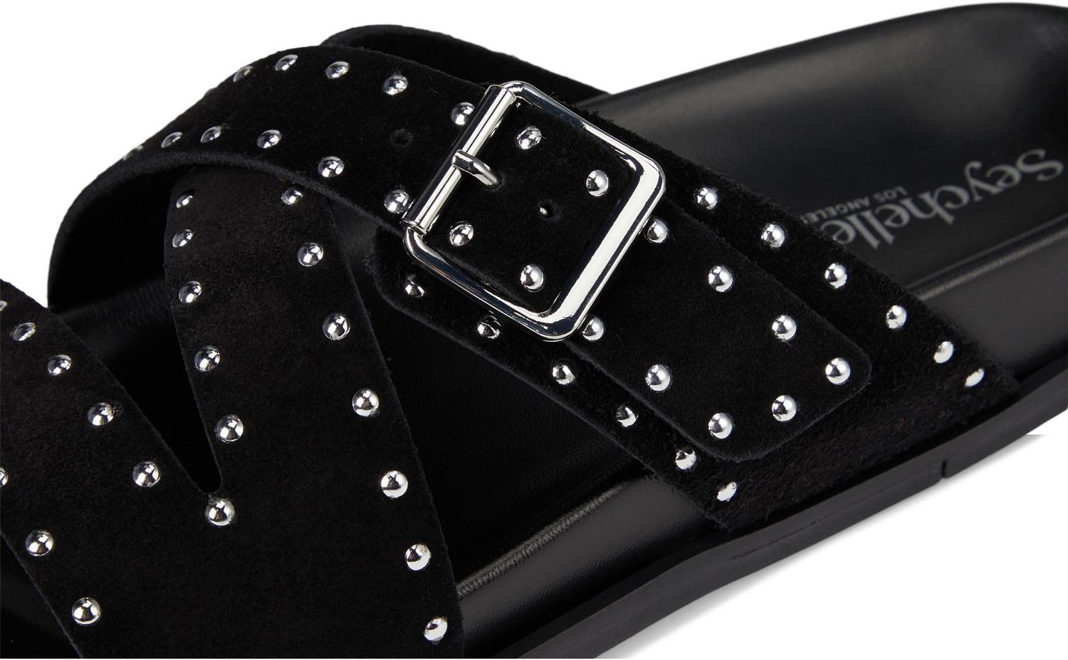 • Мюли Seychelles Vip List — это эффектные туфли-слипоны, сочетающие в себе дерзкую элегантность и повседневную практичность. Верх с перекрещивающимися ремешками, украшенный заклёпками, и пряжка создают смелый и модный образ. Открытый круглый носок обеспечивает комфорт, а мягкая стелька делает их идеальными для повседневного ношения.