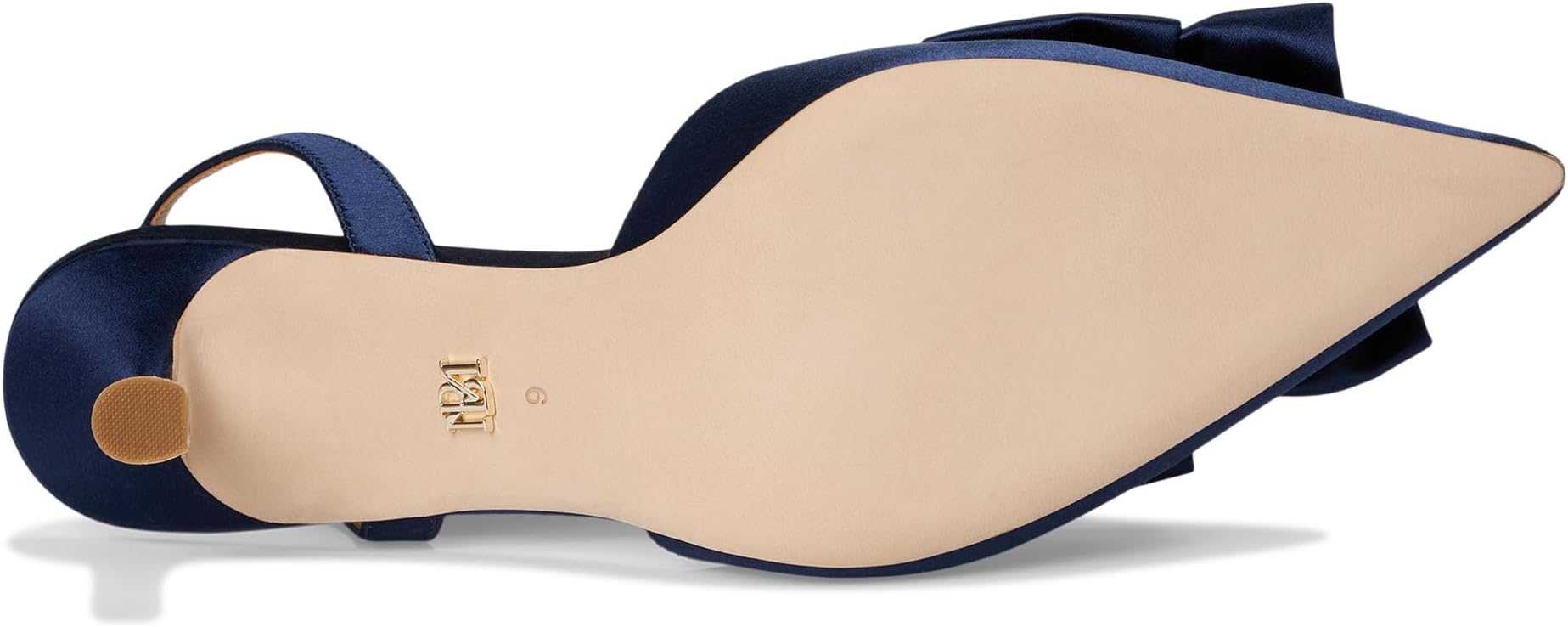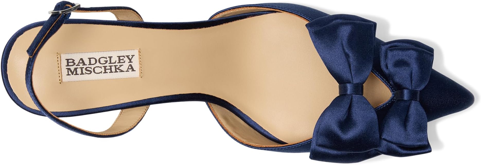 • Создайте яркий образ на следующем торжественном мероприятии в туфлях Badgley Mischka Giovanna Heels. Эти туфли на шпильке с шёлковым верхом, острым носком и двойным бантом придают образу изысканности. Регулируемый ремешок с пряжкой обеспечивает надёжную посадку. Дышащая кожаная подкладка и кожаная стелька обеспечивают комфорт.