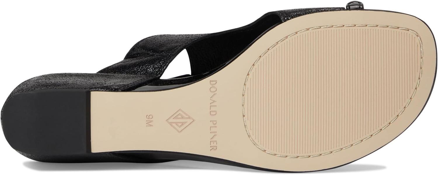• Сандалии Donald Pliner Vesna сочетают в себе элегантность и непринужденность благодаря дизайну с кольцом для большого пальца и металлическому орнаменту. Стелька из пены с эффектом памяти повышает комфорт, а полуклинка с фактурным каблуком добавляет изысканности.