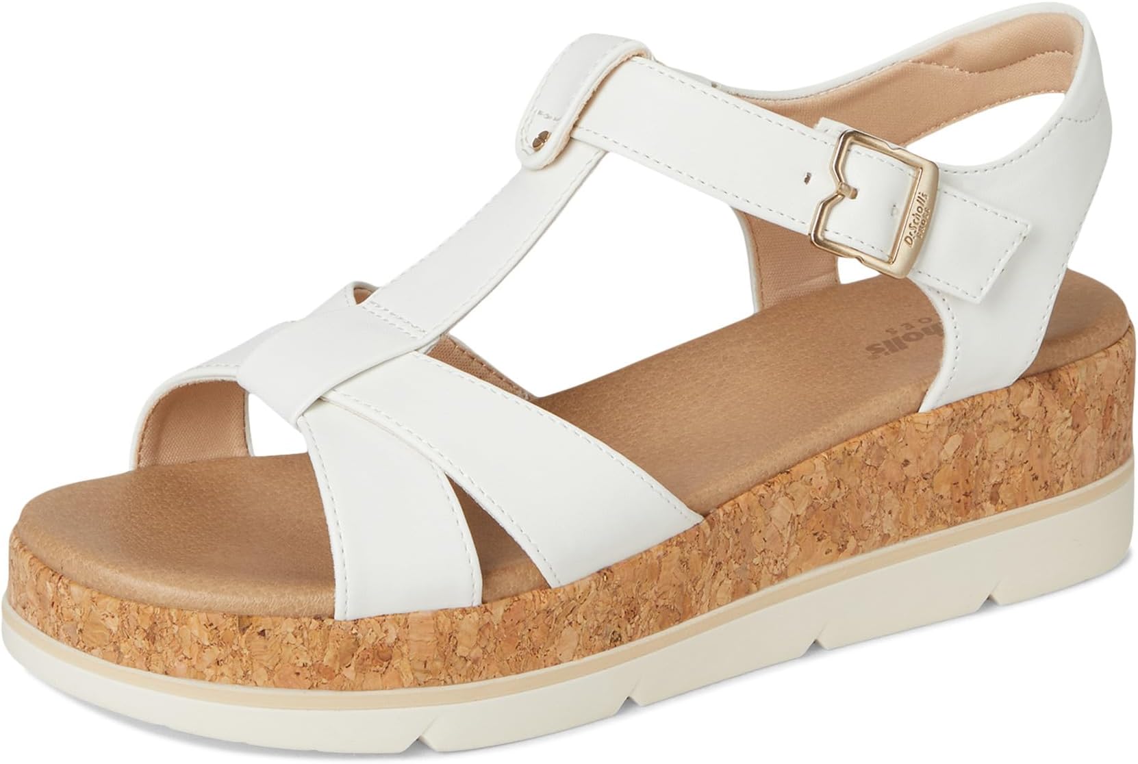 • Dr. Scholl's Once Again — удобные повседневные женские сандалии в стиле эспадрилий. Эти открытые сандалии с круглым носком выполнены из искусственной кожи с низким верхом, застежкой на липучке для удобства надевания и снимания, подкладкой из искусственной кожи и стелькой из пеноматериала. Ремешок на щиколотке и пряжка, а также эффектный каблук-танкетка.
