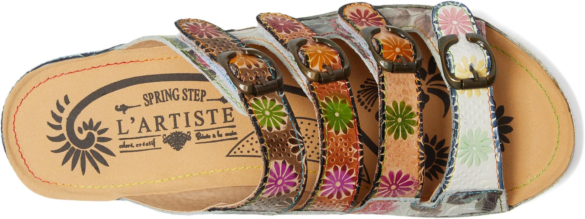 • Шлепанцы L'Artiste by Spring Step Bellini изготовлены из роскошного кожаного верха с нарисованными вручную и вытисненными цветочными акцентами, которые придают им очарование. Мягкая, мягкая стелька окружает ваши ноги нежностью облака, обеспечивая комфорт при каждом шаге.