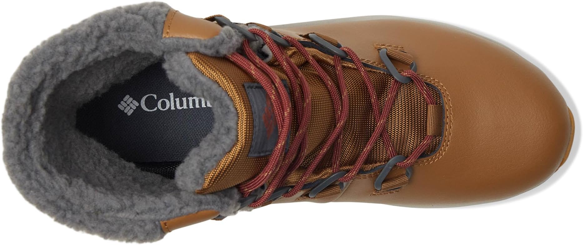 • Отправьтесь в следующее приключение с длительным комфортом в ботинках Columbia Moritza. Эти ботинки на шнуровке имеют круглый носок, водонепроницаемый кожаный верх с флисовым воротником, хлопчатобумажную подкладку и резиновую стельку.