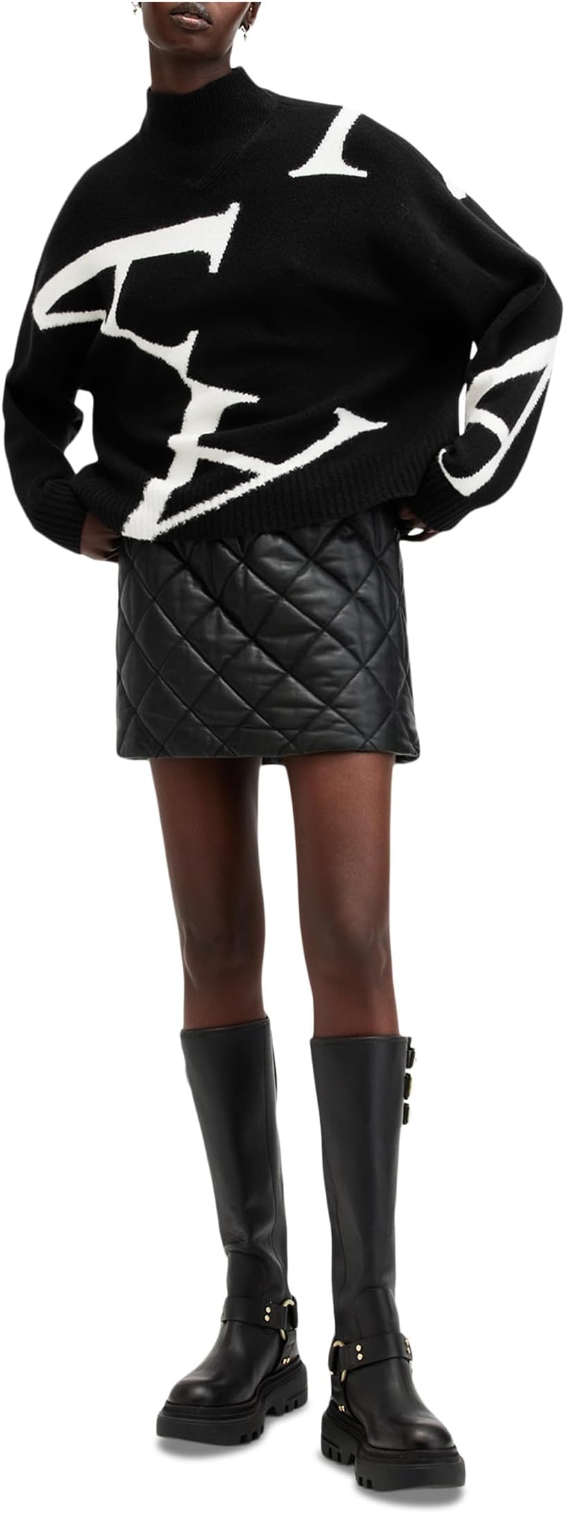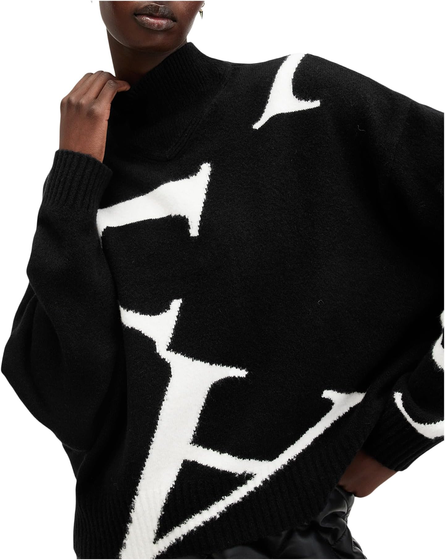 • Джемпер AllSaints A Star с контрастными вставками выглядит потрясающе. Водолазка и длинные рукава создают уютную атмосферу.