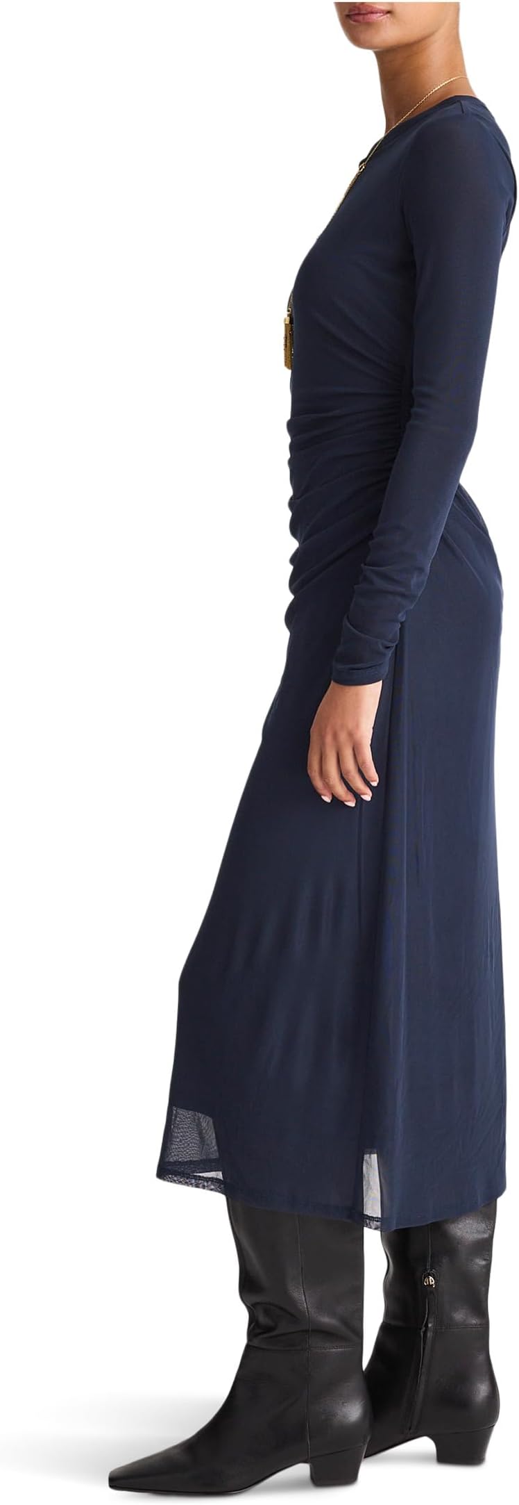 • Платье-сетка Madewell Irina Mesh полностью на подкладке по всему телу, с прозрачными длинными рукавами, что обеспечивает привлекательный вид и комфорт. Это платье миди из эластичной сетки с декоративным вырезом, рюшами на талии и прямым нижним краем. Создайте свой стильный образ в этом сетчатом платье.