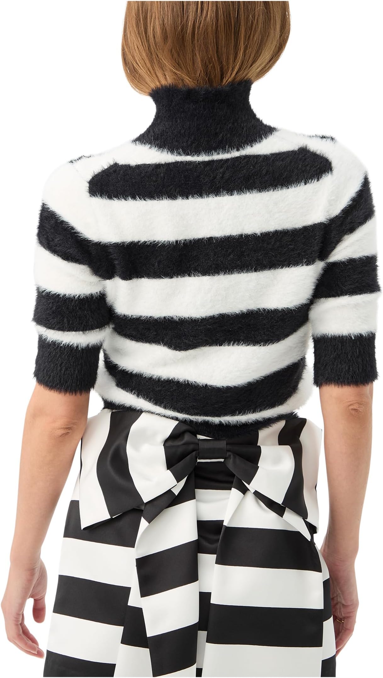• Добавьте изюминку в свой стиль с помощью свитера Trina Turk Mali с воротником-стойкой. Этот свитер с воротником-стойкой, подчеркивающим фигуру, и рукавами до локтя создаёт непринуждённый, но элегантный силуэт. Яркий полосатый рисунок по всей длине добавит игривости вашему гардеробу, а пушистая текстура создаст мягкое и уютное ощущение, которое так же приятно на ощупь, как и на вид. Ремень спереди затягивается для создания привлекательной посадки, а изящный бант сзади добавляет женственности с любой стороны. Эта универсальная модель длиной чуть выше колена идеально подходит как для повседневных бранчей, так и для вечерних выходов.