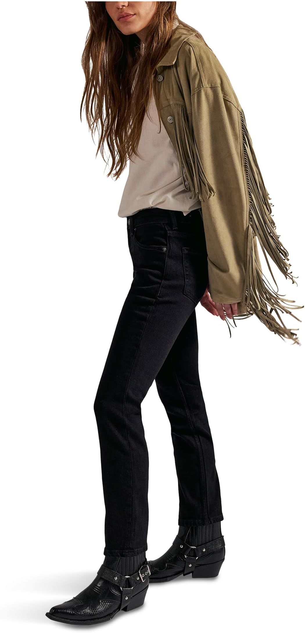 Брюки Free People Women's Oracle Low Rise Slim Stra, Jet Black 7 624₽