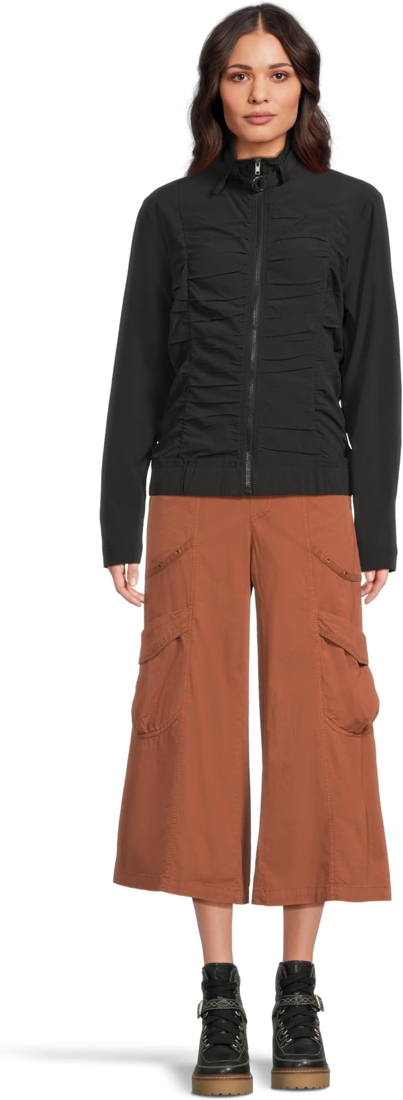 • Непринужденная классика, ваш уникальный стиль — встречайте укороченные брюки XCVI Faulkner! Приготовьтесь вывести свой стиль на новый уровень с этими шикарными укороченными брюками гаучо средней посадки, которые сочетают в себе комфорт и практичность. Эти брюки с увеличенными карманами-карго воплощают модный, непринужденный стиль с ноткой приключений. Конструкция с застежкой-молнией и эластичный пояс обеспечивают удобную посадку, а укороченные штанины добавляют современный штрих. Фурнитура Antique Brass придаёт образу нотку винтажности, а два накладных кармана и карманы с клапанами на коленях позволяют легко достать все необходимое.