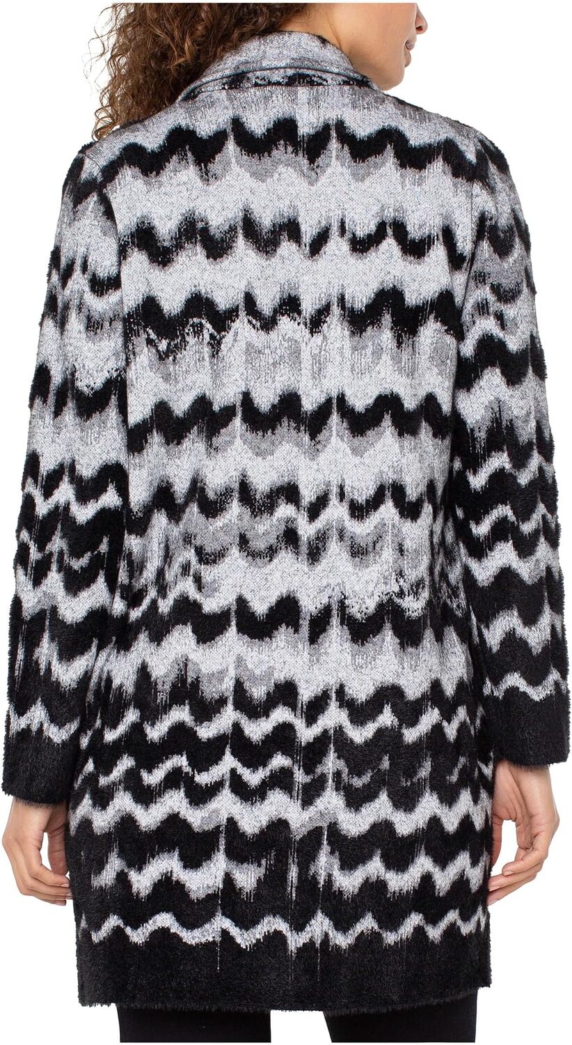 Свитер Liverpool Los Angeles Women's Long Sleeve Open Front Sweater Coat, Black Grey Wavy Stripe