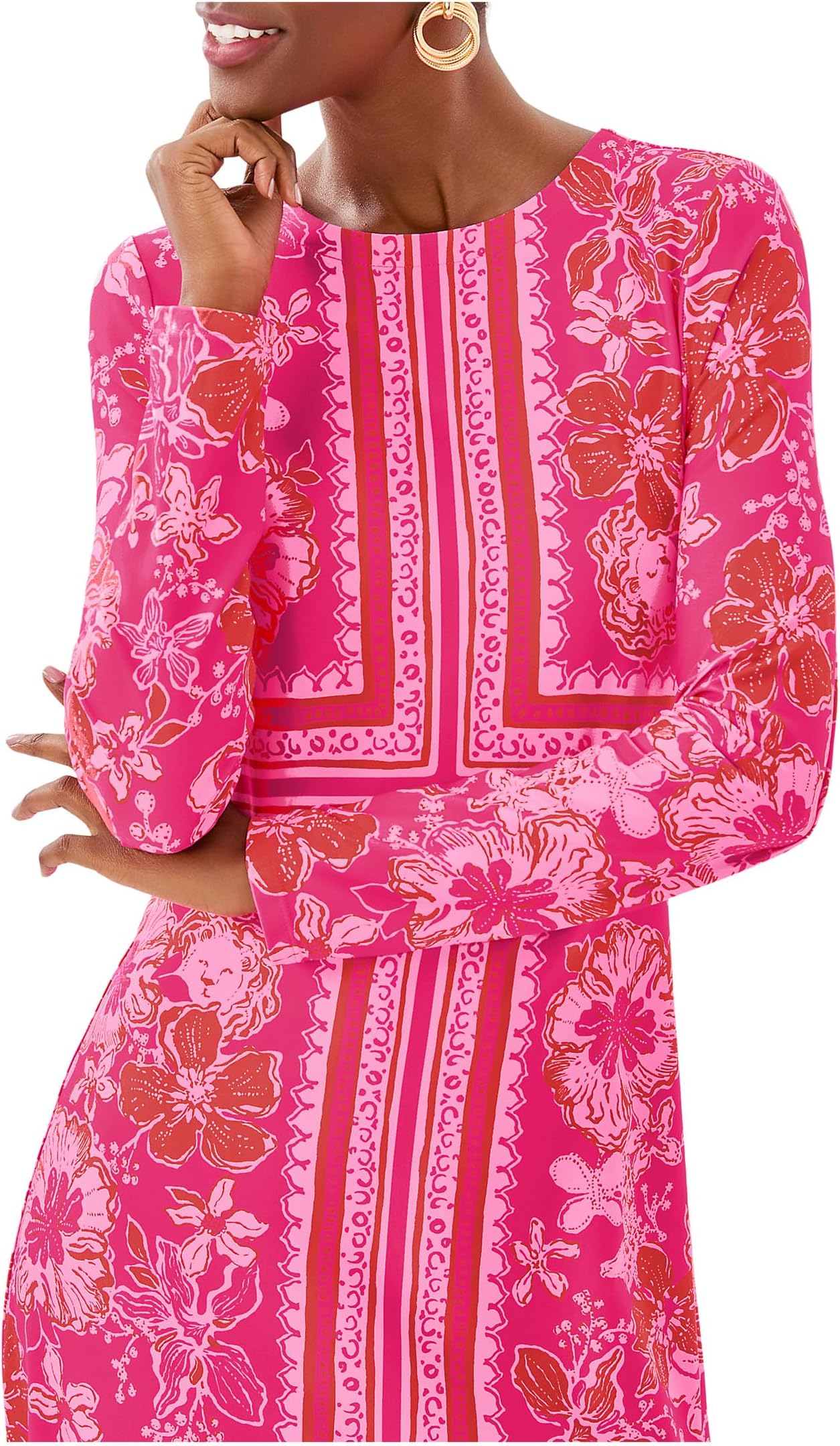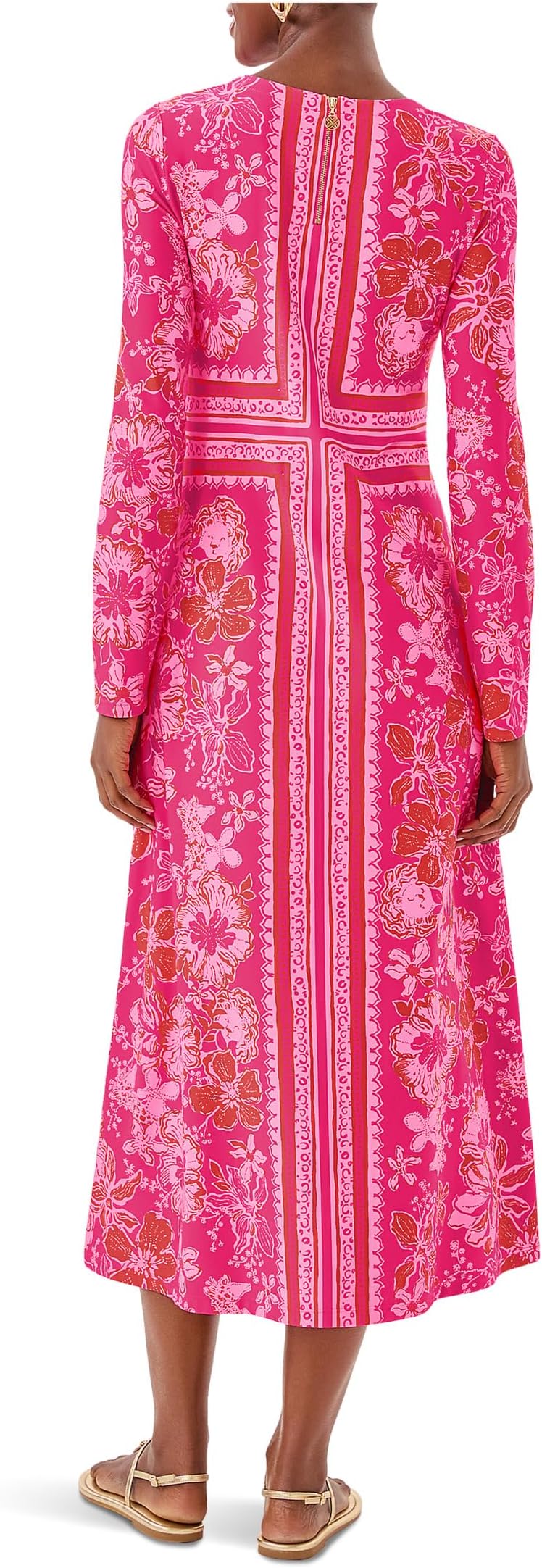 • Платье Lilly Pulitzer Zelena Upf 50+ — это платье макси с длинными рукавами, облегающее и расклешенное, сшитое из лёгкой ткани ChillyLilly, обеспечивающей защиту от солнца и непринуждённую элегантность. Ткань отводит влагу, лёгкая, не мнется и имеет коэффициент защиты от солнца UPF 50+.