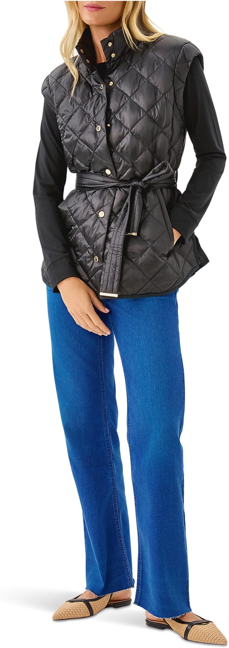 • Украсьте свой образ жилетом Lilly Pulitzer Adenna. Этот жилет прямого кроя с воротником-стойкой и без рукавов обеспечивает свободу движений, не жертвуя стилем. Застежка на кнопки спереди обеспечивает быстрое и удобное одевание, а косые карманы позволяют удобно хранить все необходимое. Удобный крой и завязка на талии позволяют корректировать фигуру, идеально сочетая жилеты со свитерами, футболками и платьями.