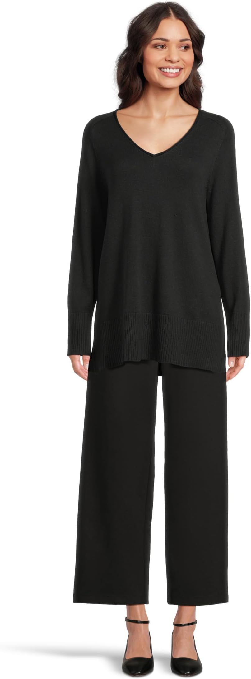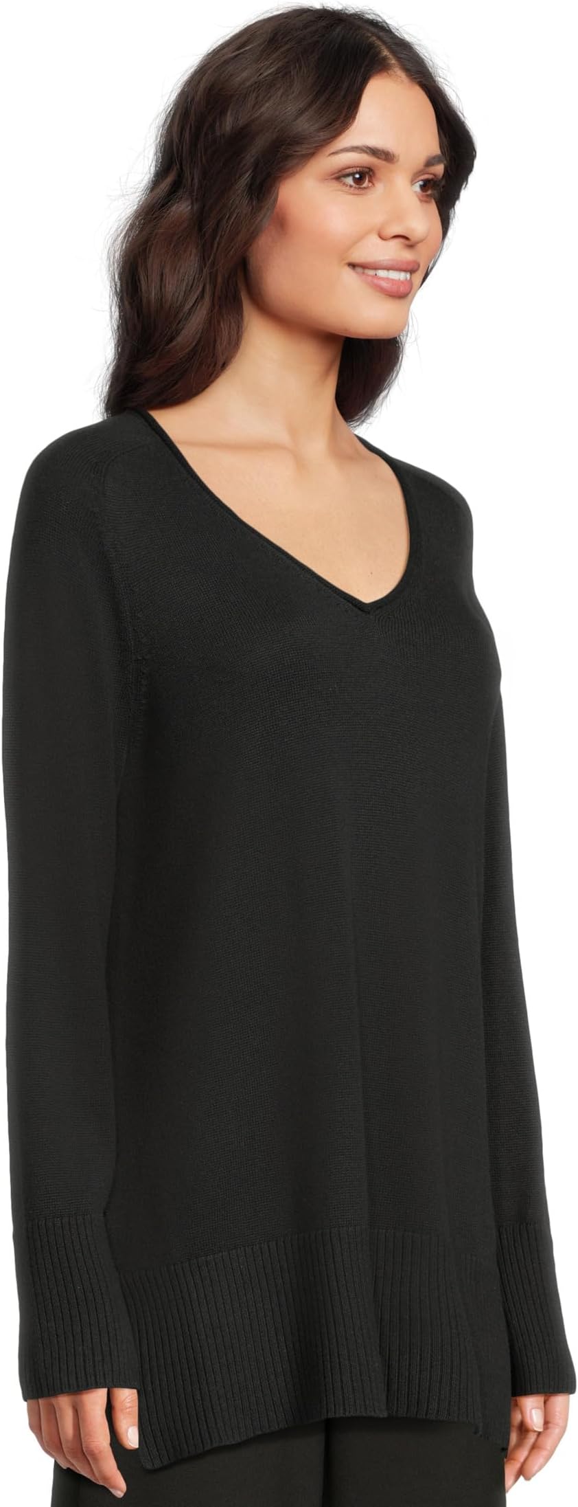 Свитер Eileen Fisher Women's Peruvian Cotton Blend V-neck Sweater, Black