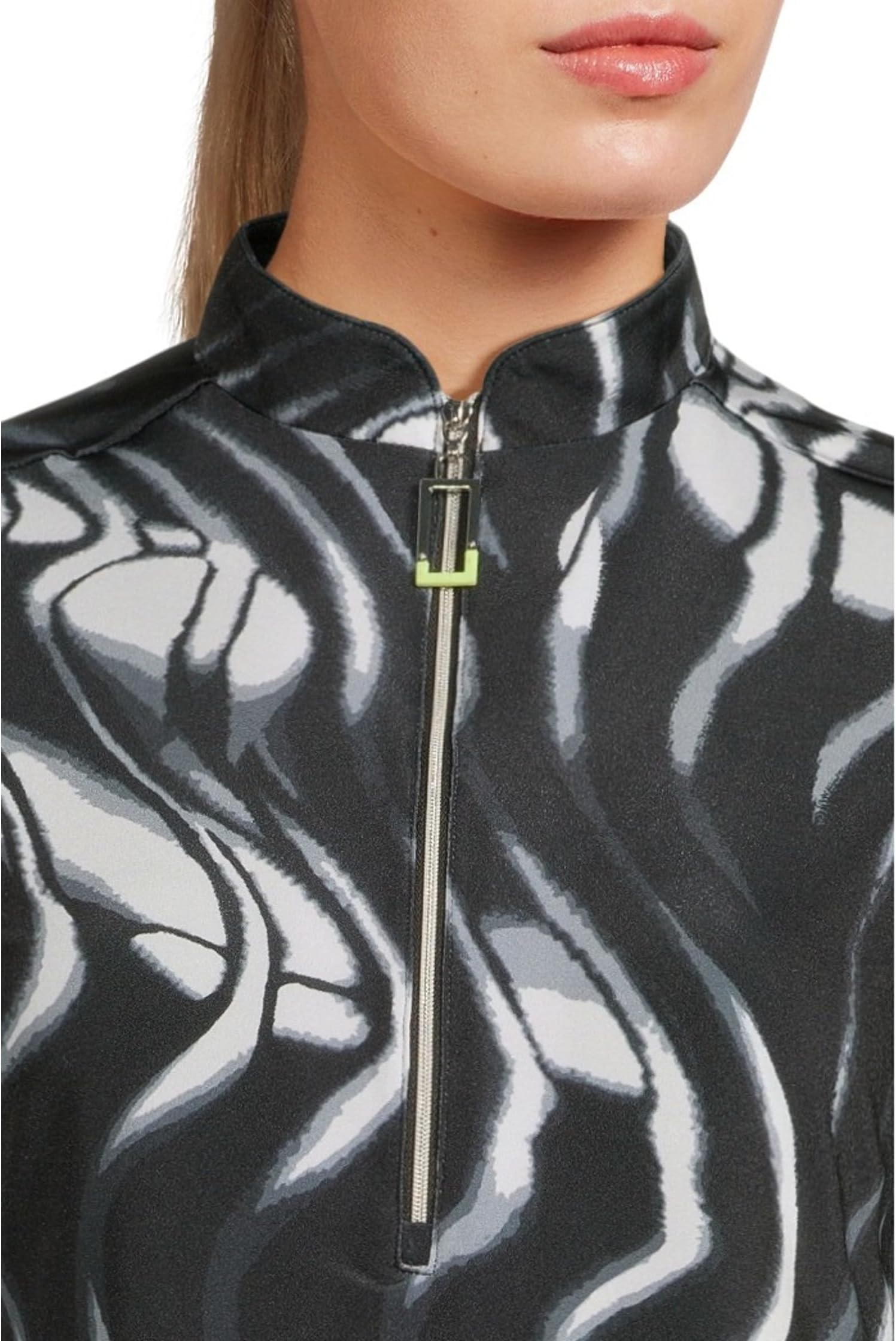 • Рубашка-поло Jamie Sadock Whirlwind Print, изготовленная вручную из лёгкой дышащей ткани Cooltrex. Мягкий и эластичный верх, который легко надевать, имеет воротник-стойку, застёжку-молнию на четверть оборота, короткие рукава, принт по всей поверхности и прямой подол.