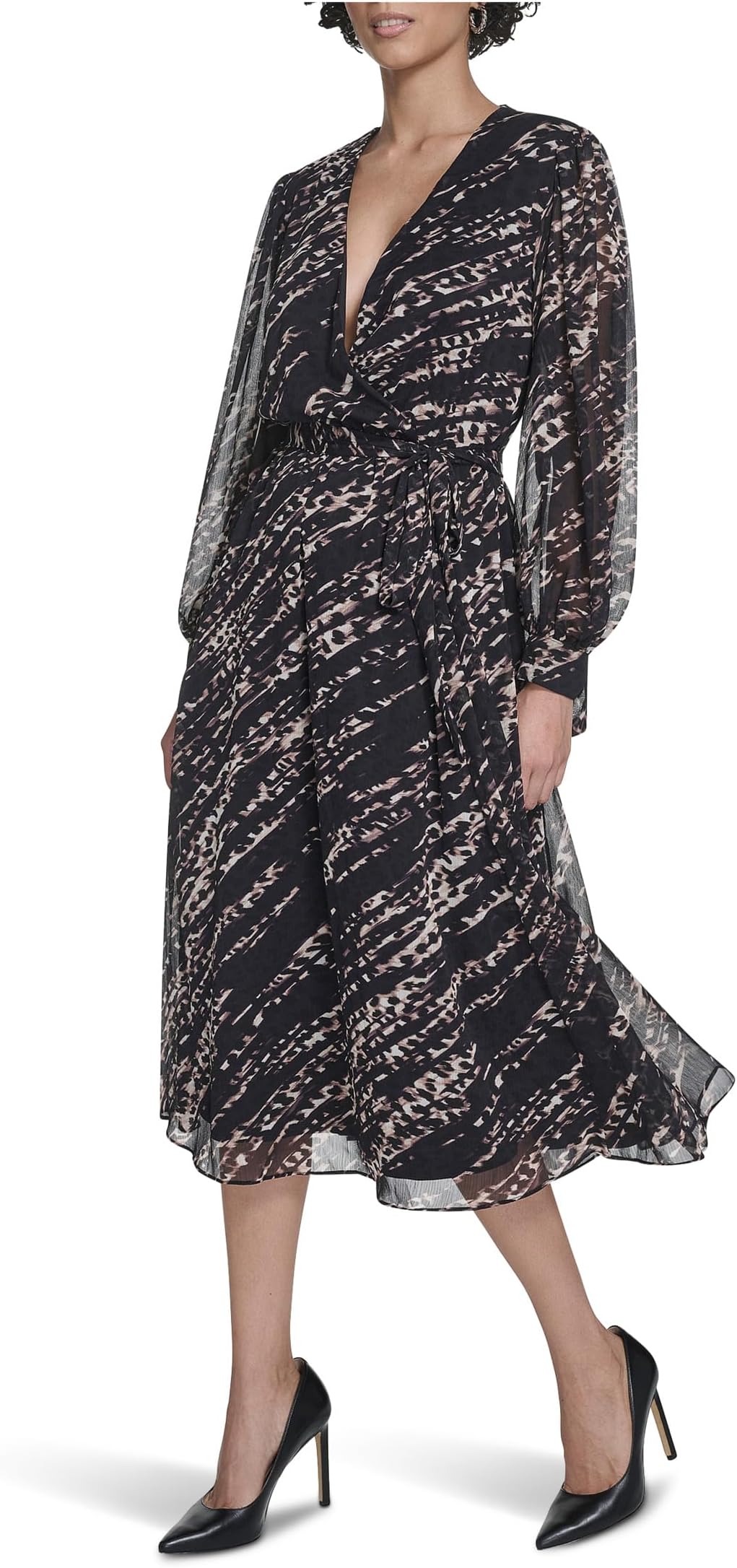 Женское шифоновое платье-рубашка с длинным рукавом Calvin Klein, Black Multi
