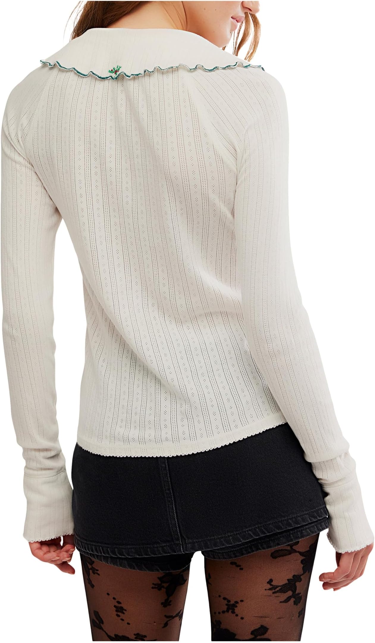 • Этот кардиган с длинными рукавами, представляющий собой свежий взгляд на классический силуэт, выполнен из лёгкого ажурного материала, имеет приталенный, свободный крой и очаровательный воротник Питер Пэн, который добавит очарования любому образу. Отделка фестончатым узором. Застёжка на пуговицы спереди. Вышитые детали. Завязка на шее.