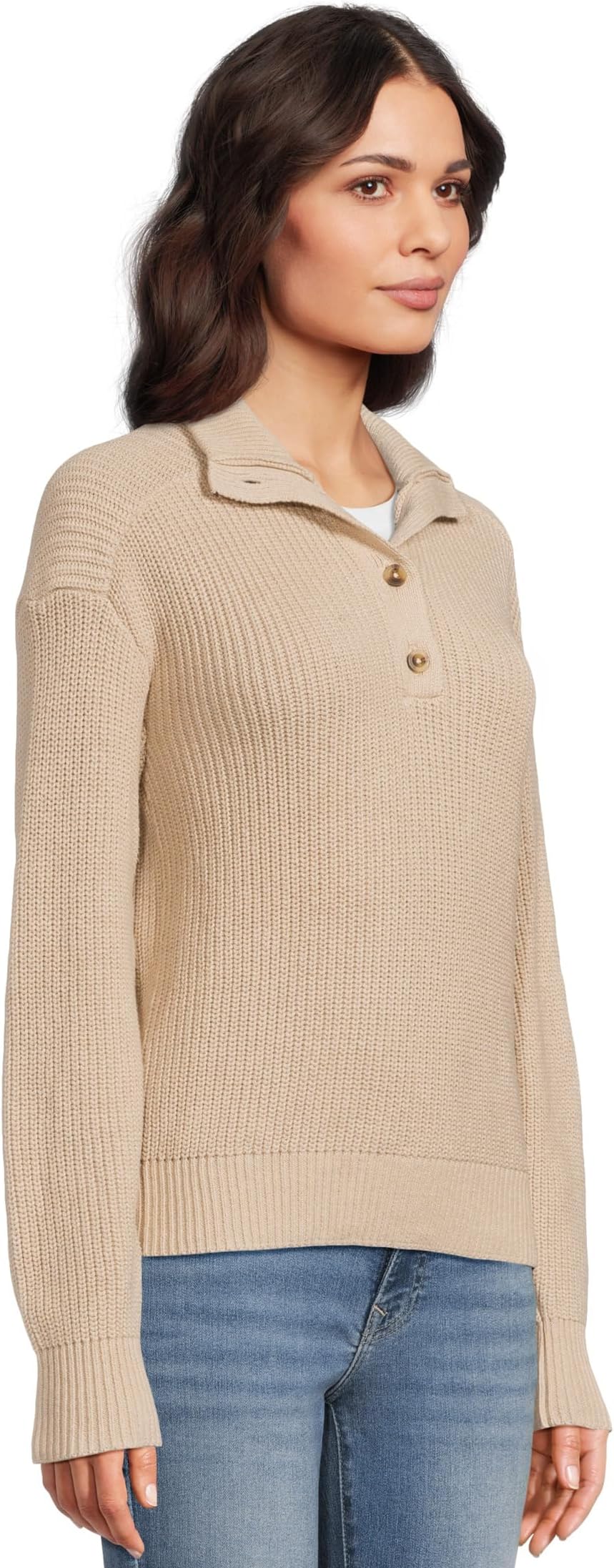 Свитер PACT Women's Luxe Knit Henley Sweater, Flax Heather