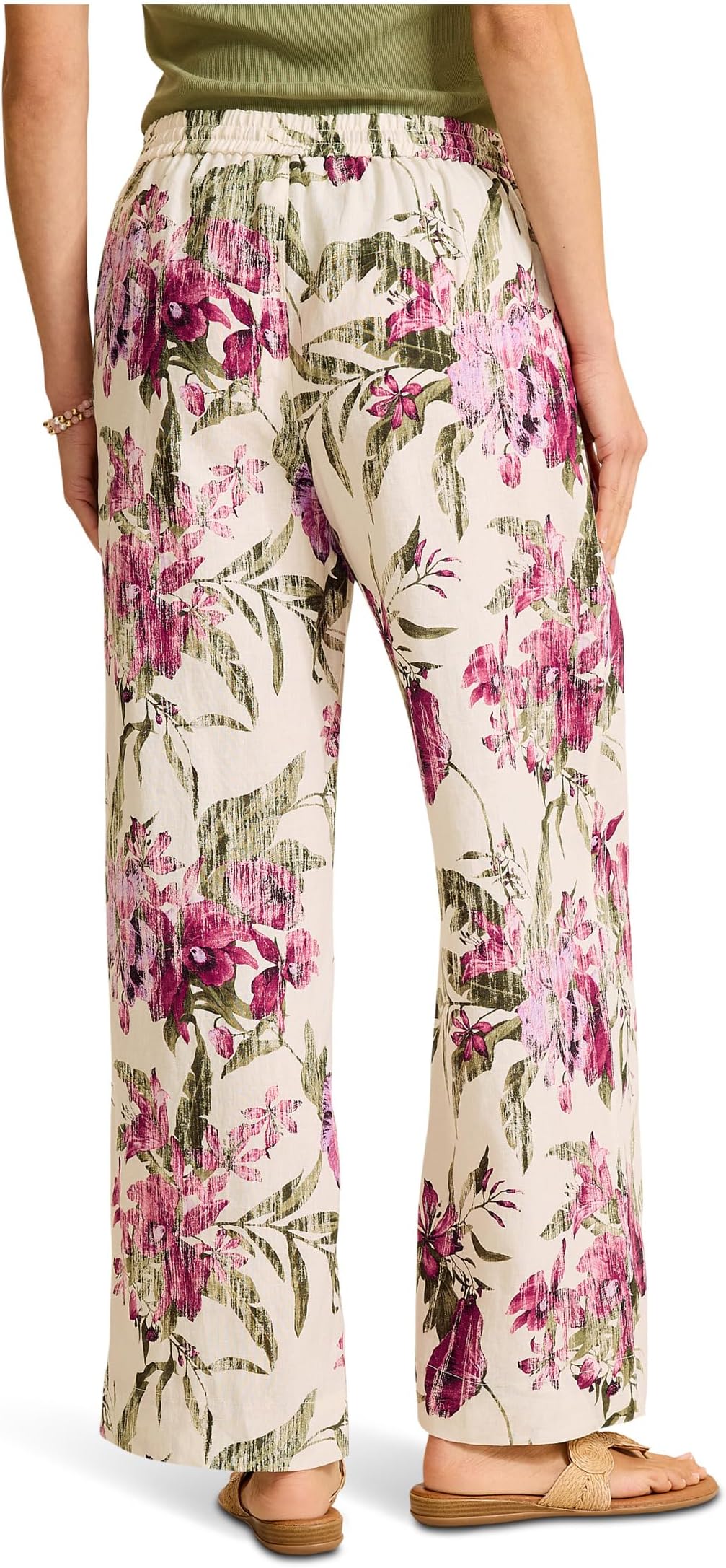 • Брюки с принтом, легко надеваются, изготовлены из 100% льна, который можно стирать. Талия полностью на резинке, с завязками, боковые карманы.