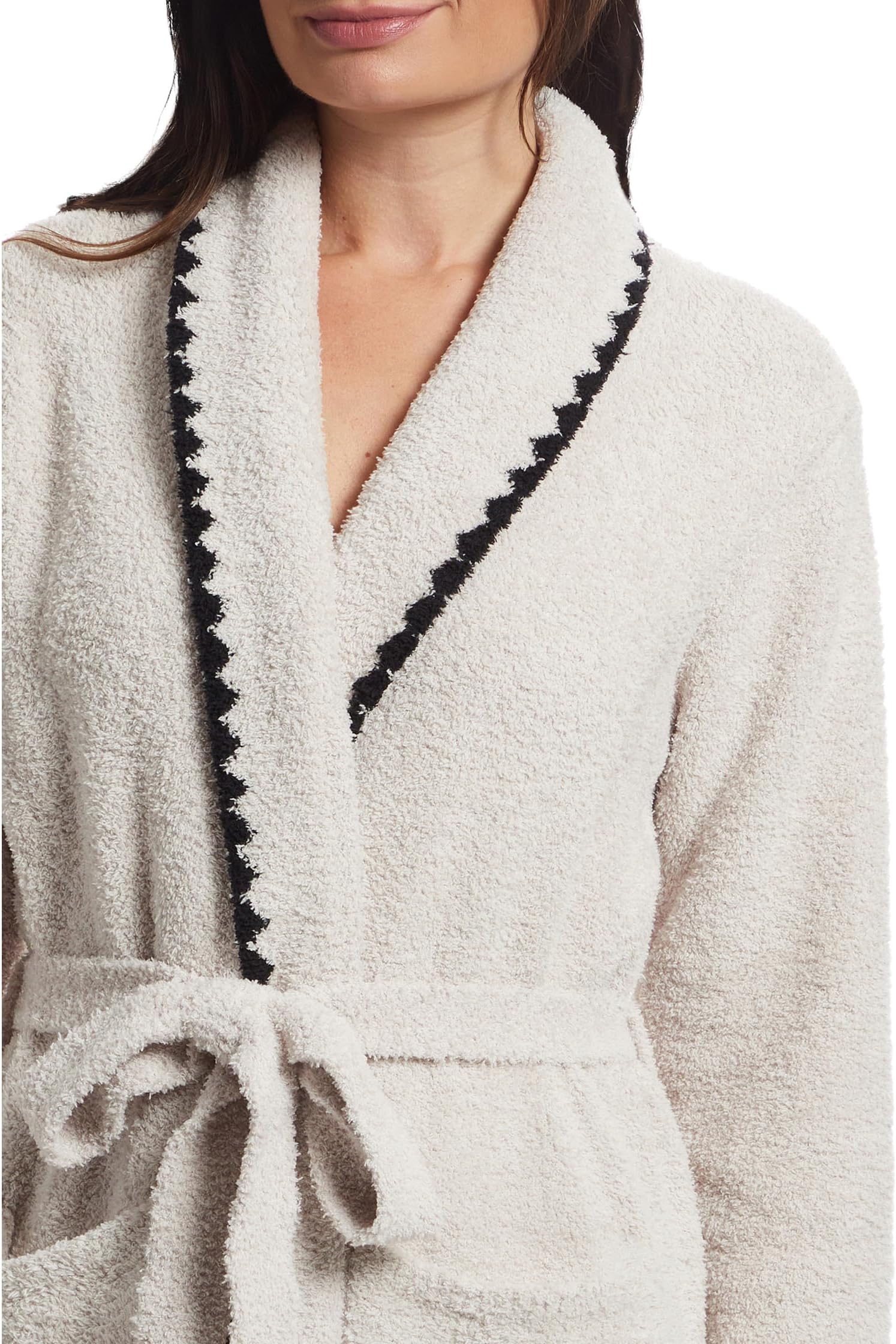• Ничто не сравнится с мягкостью и роскошью халата Barefoot Dreams Cozychic, выполненного методом шитья. Этот халат отделан жаккардовым узором шитья по вырезу и центру, а также имеет накладные карманы спереди. Длинные рукава, пояс на талии и прямой подол. Этот уютный и роскошный халат с поясом невероятно комфортен и идеально подходит для начала и завершения дня.