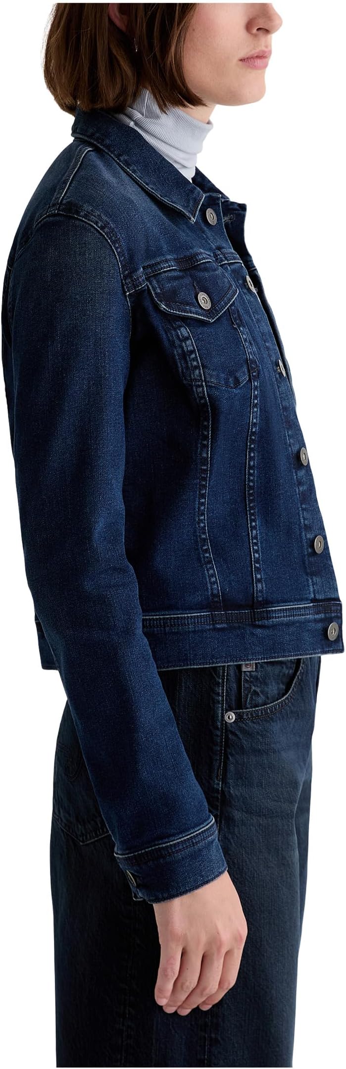• Куртка Robyn от AG Jeans: гармоничное сочетание винтажного стиля и современных трендов. Эта джинсовая модель сшита по фигуре и отличается элегантным приталенным кроем, который идеально облегает фигуру. Длинные рукава, воротник-стойка и застежка на пуговицы спереди идеально подходят для многослойного образа, добавляя изысканности. Два нагрудных кармана на пуговицах обеспечивают функциональность и элегантность, а регулируемые хлястики на талии позволяют корректировать силуэт.
