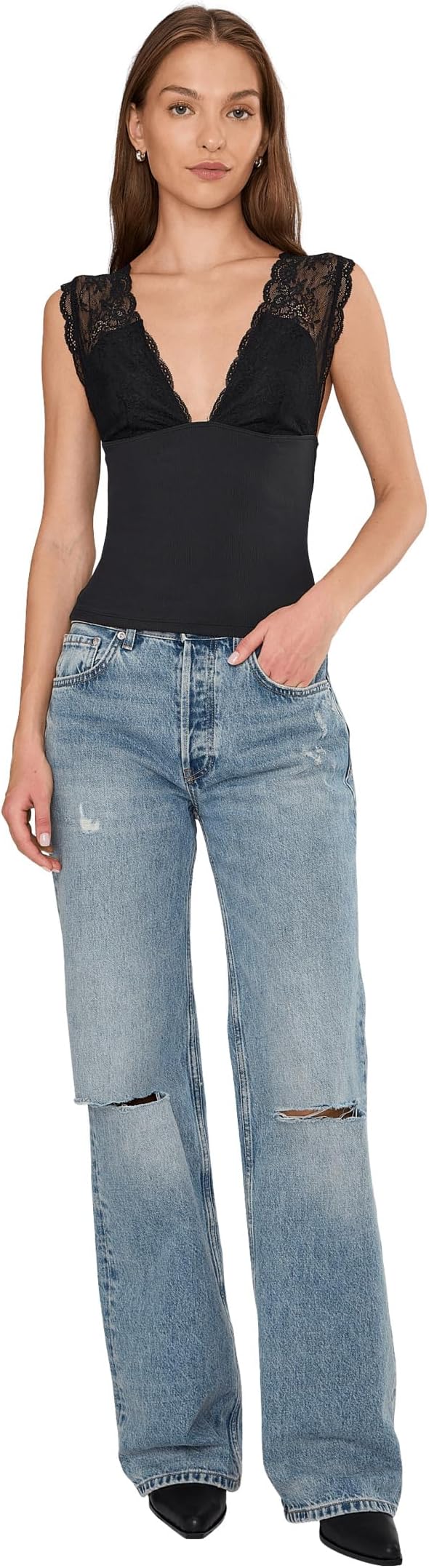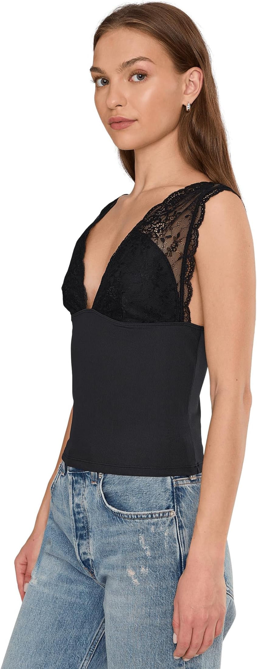 • Эта классическая и женственная майка-ками с глубоким вырезом, украшенным кружевом, и ребристым лифом облегающего укороченного силуэта. Глубокая спинка, эластичный крой и без рукавов.