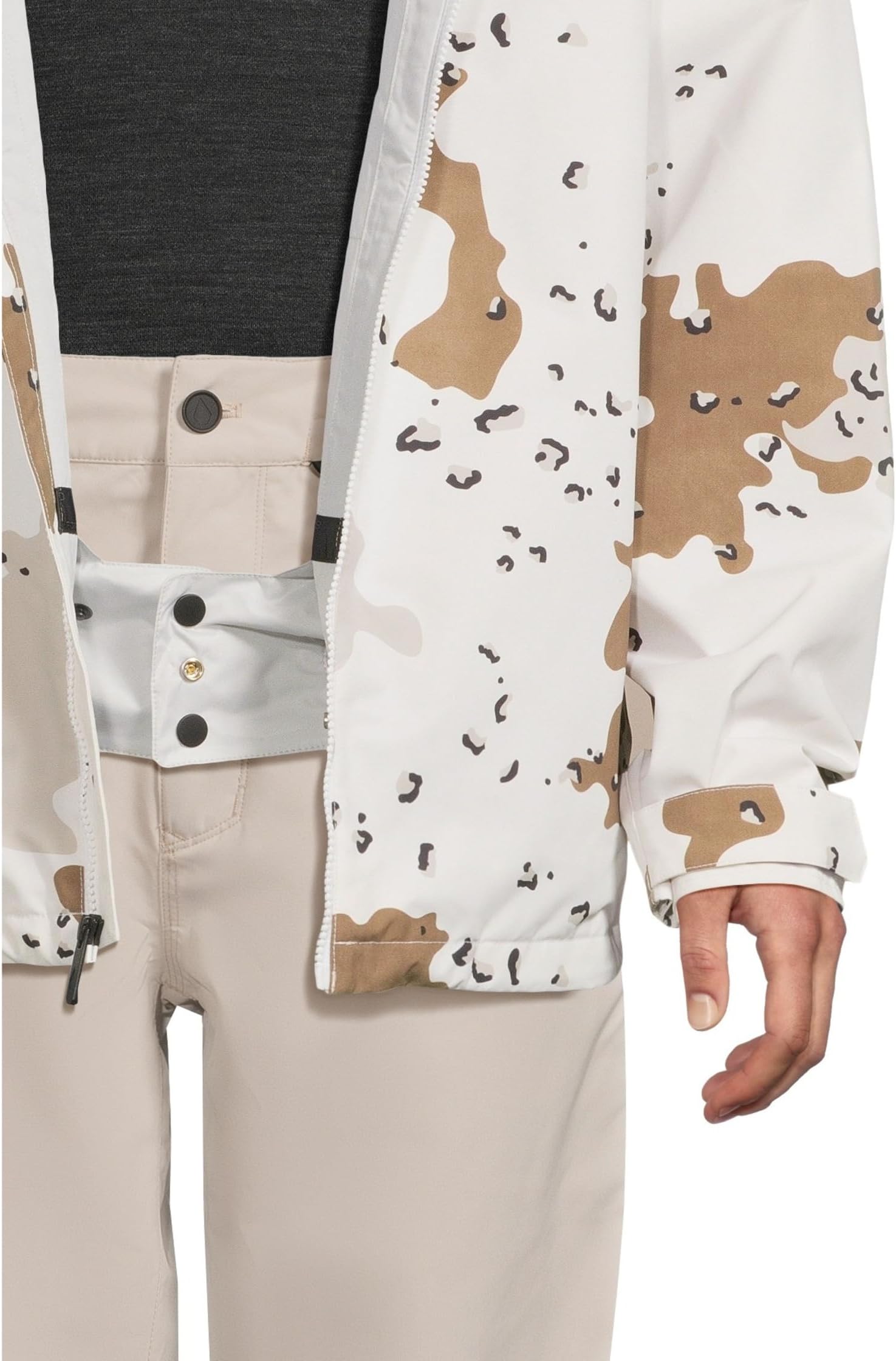• Перенеситесь с улиц на вершины с помощью куртки Zip Tech Jacket to Pant Interface. Куртка оснащена съёмным капюшоном на петлях с фиксатором-застёжкой и защитой подбородка из суперзамши. Куртка оснащена вентиляционными отверстиями на молнии с сетчатой подкладкой и регулируемой защитой от снега.