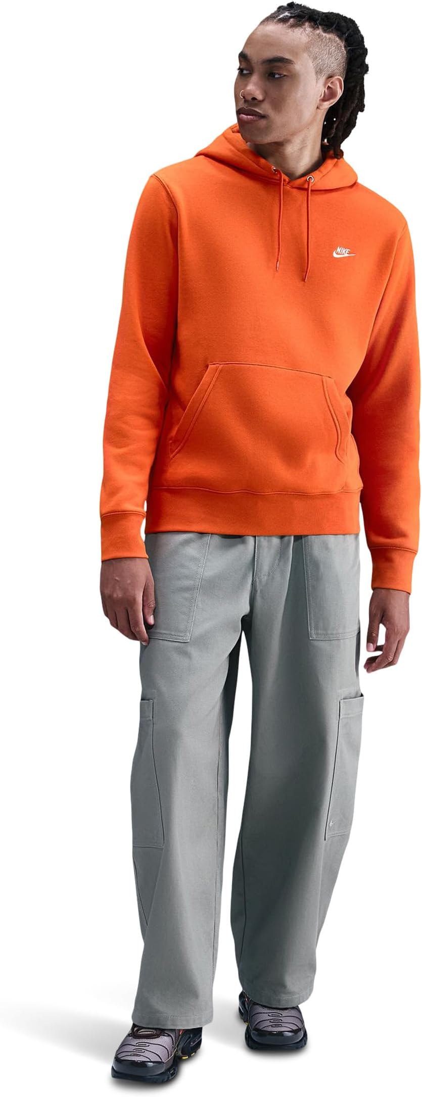 Мужской клубный флисовый пуловер с капюшоном Nike, Campfire Orange/Campfire Orange/White