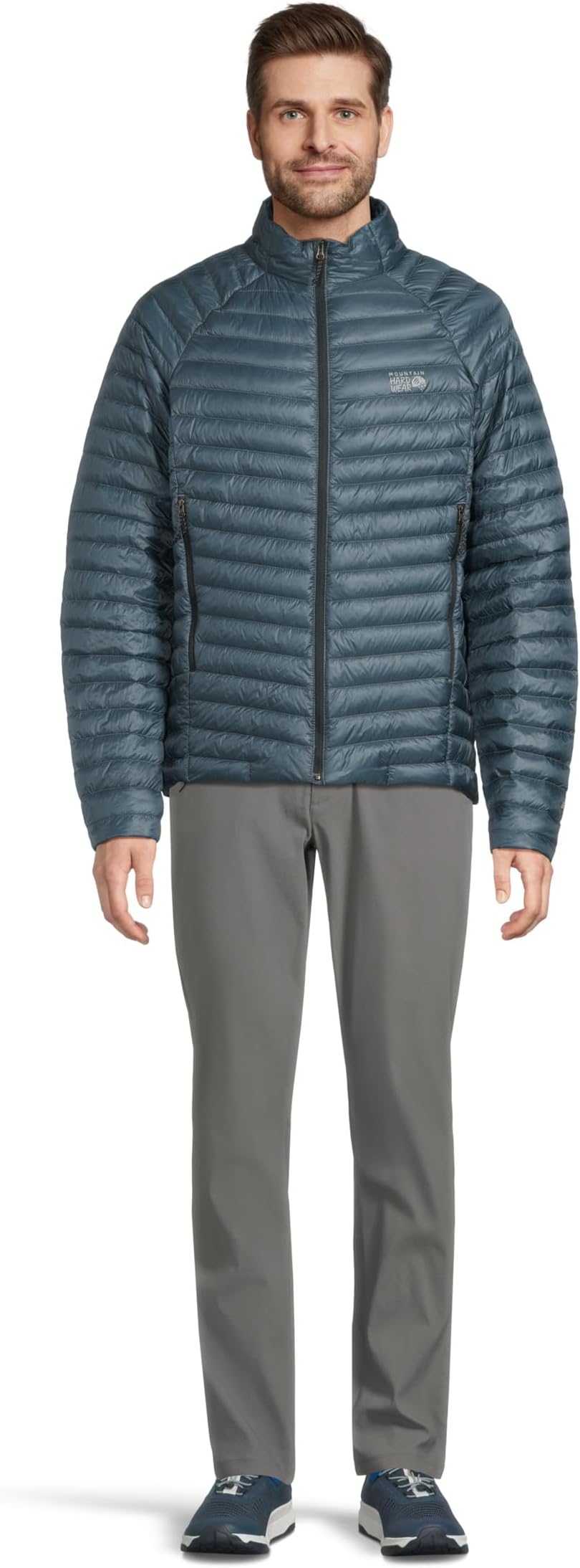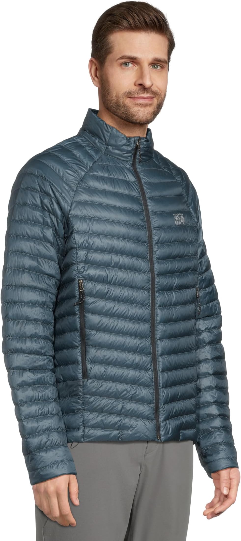 • Куртка Mountain Hardwear Ghost Whisperer, представляющая собой экологичную интерпретацию популярной ультралёгкой модели с пуховым наполнителем, изготовлена из ультралёгкой ткани рипстоп с пуховым утеплителем 800 Fill, сертифицированным RDS, для длительного сохранения тепла. Передняя перегородка на манжетах заполнена синтетическим утеплителем для предотвращения промокания, а застёжка на молнии спереди обеспечивает удобство надевания. Эта куртка на молнии имеет длинные рукава, воротник-стойку и прямой подол. Благодаря своей компактной конструкции эта стеганая куртка легко помещается в собственный карман для рук с помощью внутренней петли с карабином.