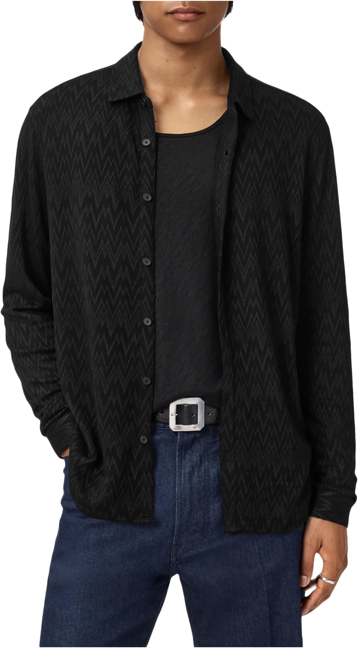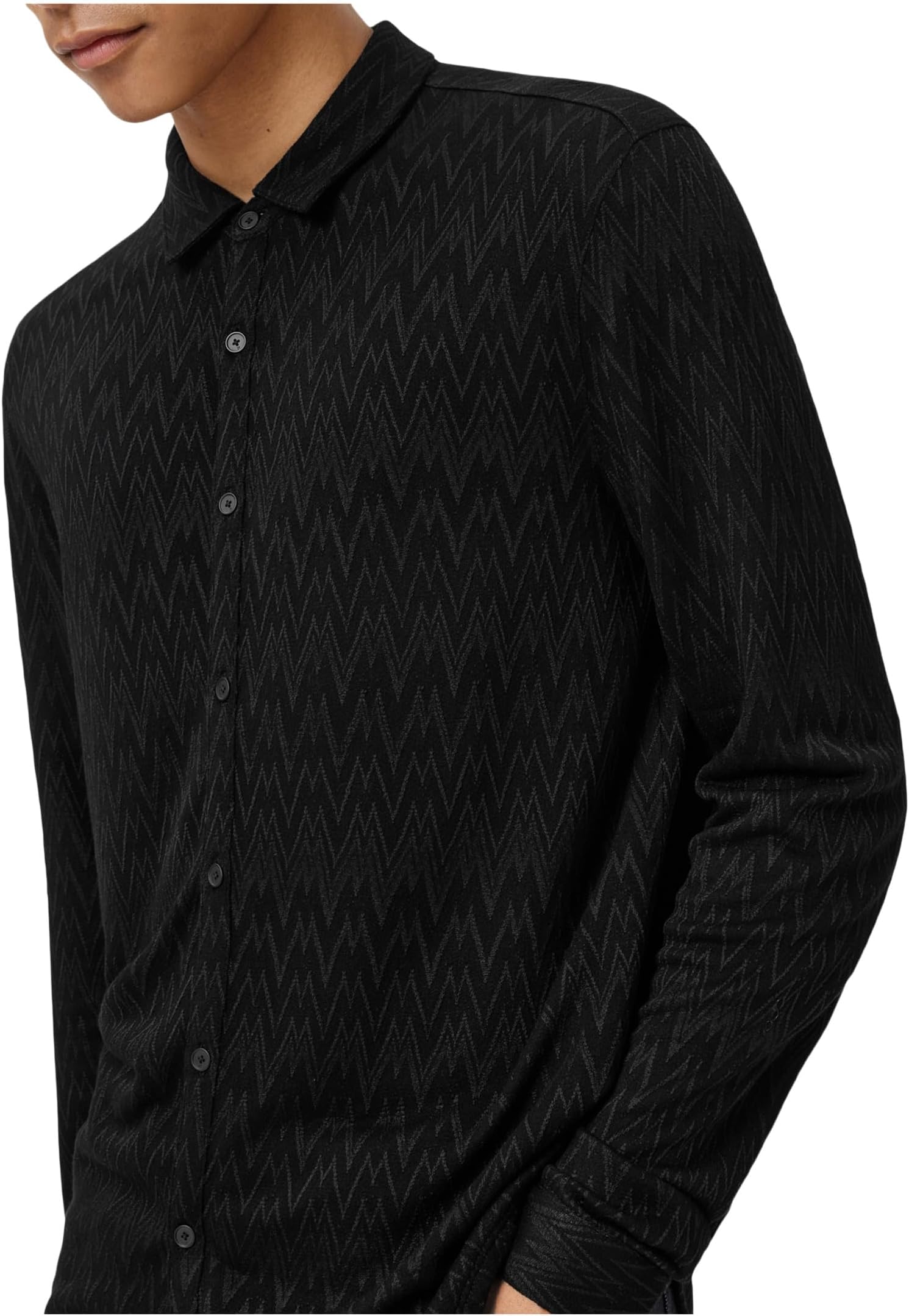 • Создайте невероятно стильный образ в рубашке John Varvatos Redmond. Рубашка имеет воротник-стойку, длинные рукава с манжетами на пуговицах, застёжку на пуговицы спереди, стильный узор по всей поверхности и крой рубашки.