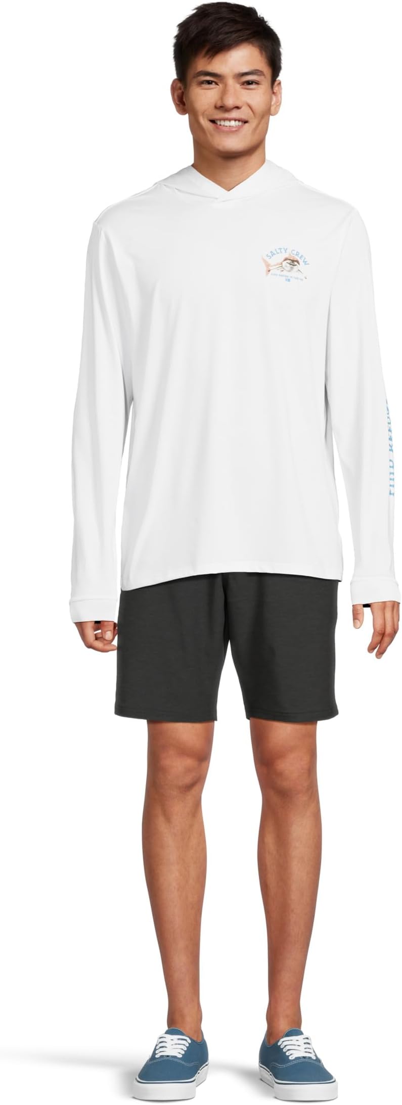 • Покоряйте волны стильно в рубашке-капоре Salty Crew Lurking Hooded Sunshirt. Эта лёгкая рубашка с капюшоном и длинными рукавами обеспечивает надёжную защиту, не утяжеляя тело. Изготовленная из дышащей ткани, растягивающейся в четырёх направлениях, она не сковывает движений, независимо от того, закидываете ли вы удочку, гоняетесь за волнами или просто отдыхаете на берегу. Благодаря защите от солнца UPF 50+ она защищает вас от вредных солнечных лучей, а её влагоотводящие свойства естественным образом способствуют поддержанию влажности и свежести во время ваших приключений. Легко надевается, обеспечивает удобство, а смелый рисунок, нанесенный методом шелкографии на груди, спине и рукавах, привнесет аутентичный стиль в стиле серфинга в ваш повседневный образ.