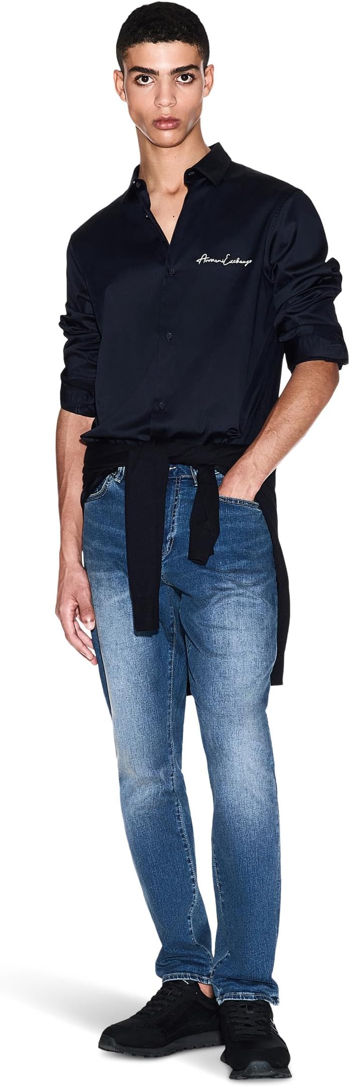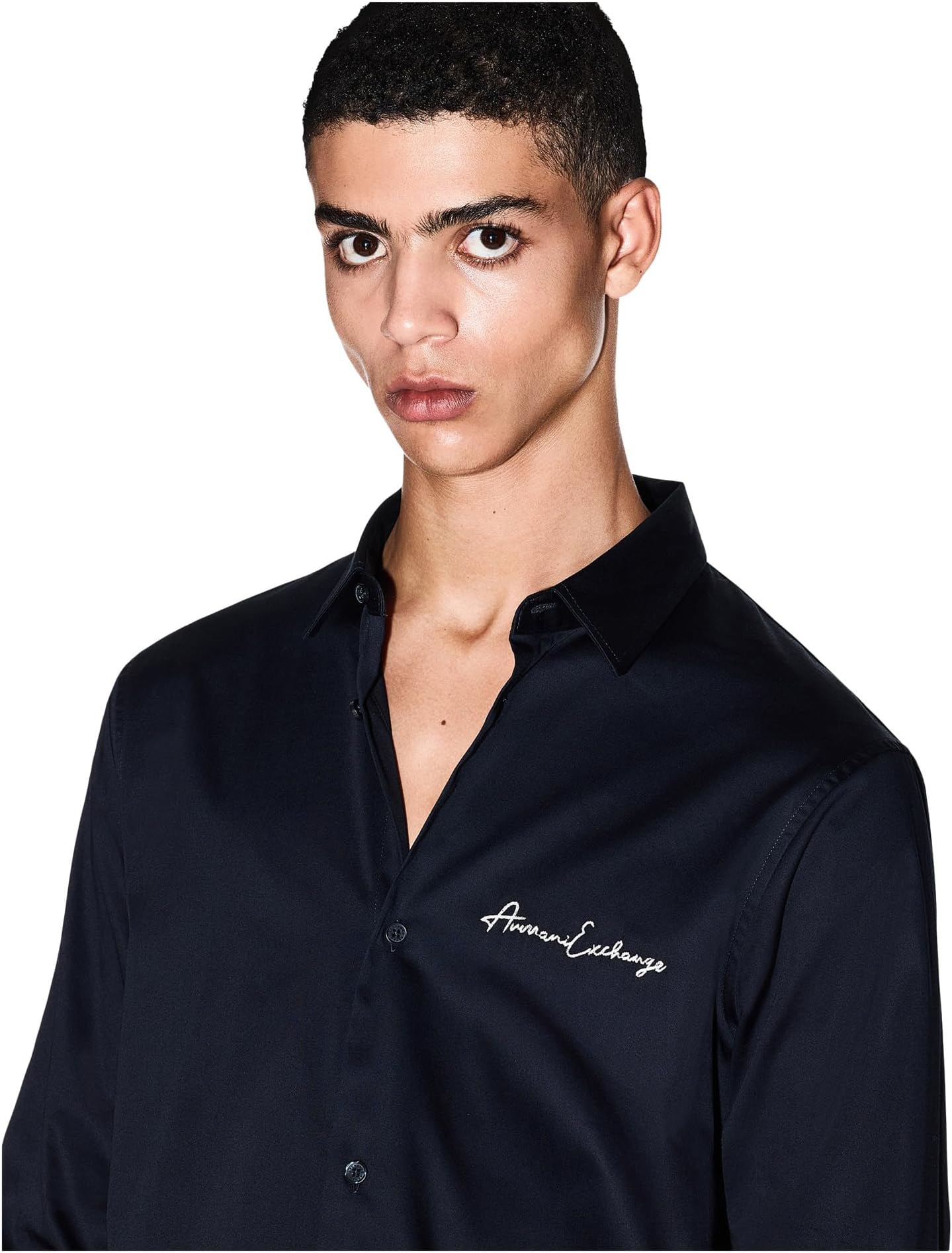 Мужская рубашка на пуговицах с логотипом Armani Exchange, Deep Navy