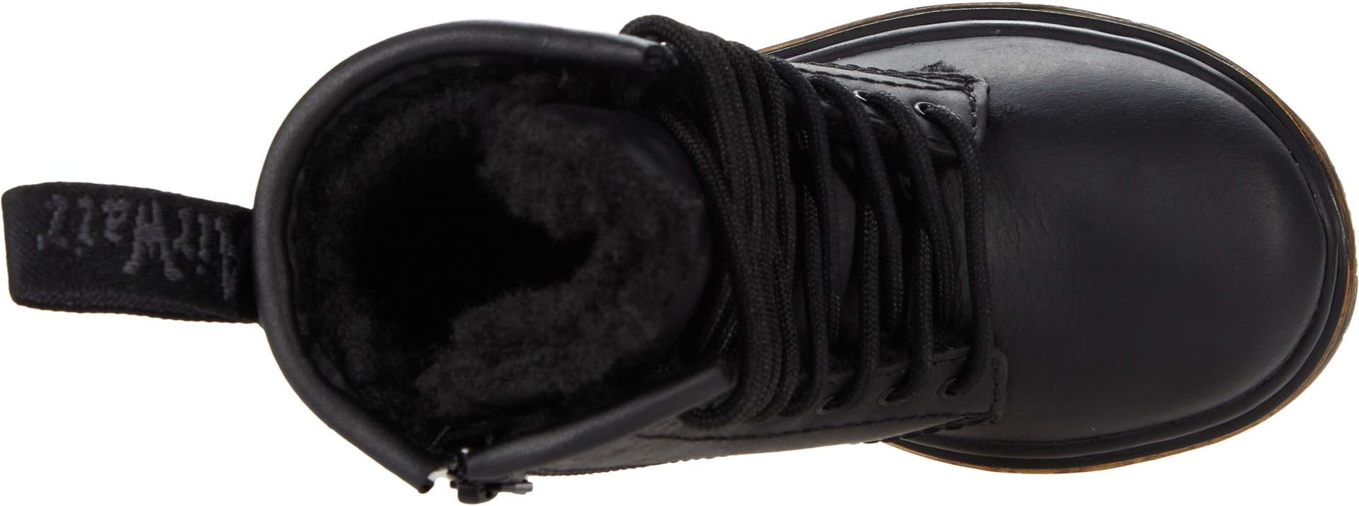 • Сохраните свои ноги сухими и в тепле в ботинках Dr. Marten's Kid's Collection 1460 Serena Mono из водоотталкивающей кожи с черными прострочками.