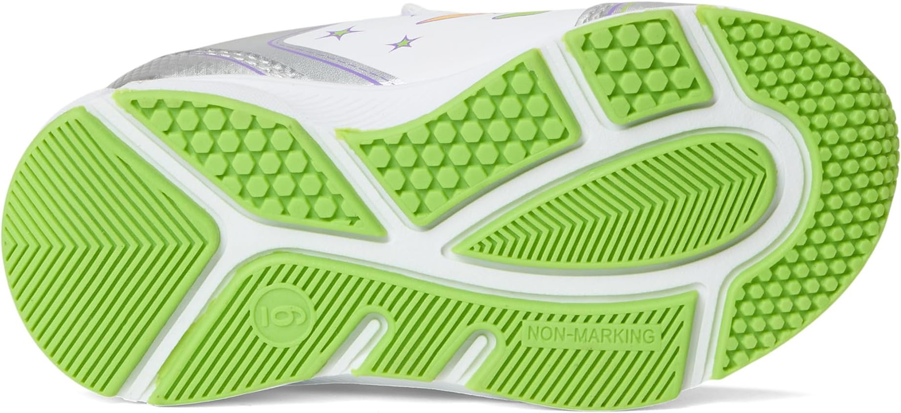 • Дайте волю воображению вашего малыша, создавая стильные кроссовки Josmo Toy Story Buzz Lightyear со светящимися деталями. Эти игривые кроссовки с прочным верхом из полиуретана и мягкой стелькой в сочетании с мягкой полиэстеровой подкладкой обеспечивают комфорт в течение всего дня. Застежка-липучка обеспечивает удобную и надежную посадку, идеально подходящую для приключений на ходу. Боковые панели украшены светящимися фигурками знаменитых персонажей Истории игрушек Вуди и Базза Лайтера, привнося целую галактику восторга в каждый шаг. Подошва из синтетической резины обеспечивает надежное сцепление и долговечность, позволяя бегать, прыгать и исследовать мир.
