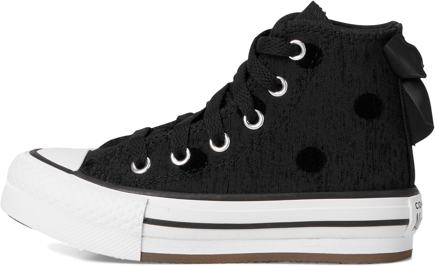 • Стиль с изюминкой: кеды Converse Kids Chuck Taylor All Star Lift Bow Platform добавят очаровательный и модный штрих каждому шагу. Эти кеды с забавным рисунком в горошек и декоративным бантом мгновенно добавят праздничного настроения, сделав каждый шаг выразительным. Верх и подошва из прочной резины обеспечивают долговечность, а подкладка из синтетической резины и стелька из полиэстера обеспечат комфорт вашему малышу в течение всего дня. Классическая шнуровка обеспечивает надежную регулируемую посадку, которая подойдет как для игр на детской площадке, так и для вечеринок. Культовый силуэт Чака Тейлора приобретает игривый вид благодаря платформе, сочетая стиль и высоту в одном очаровательном комплекте.