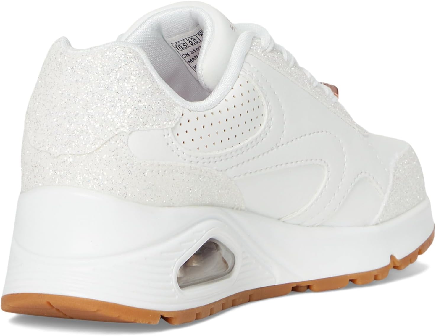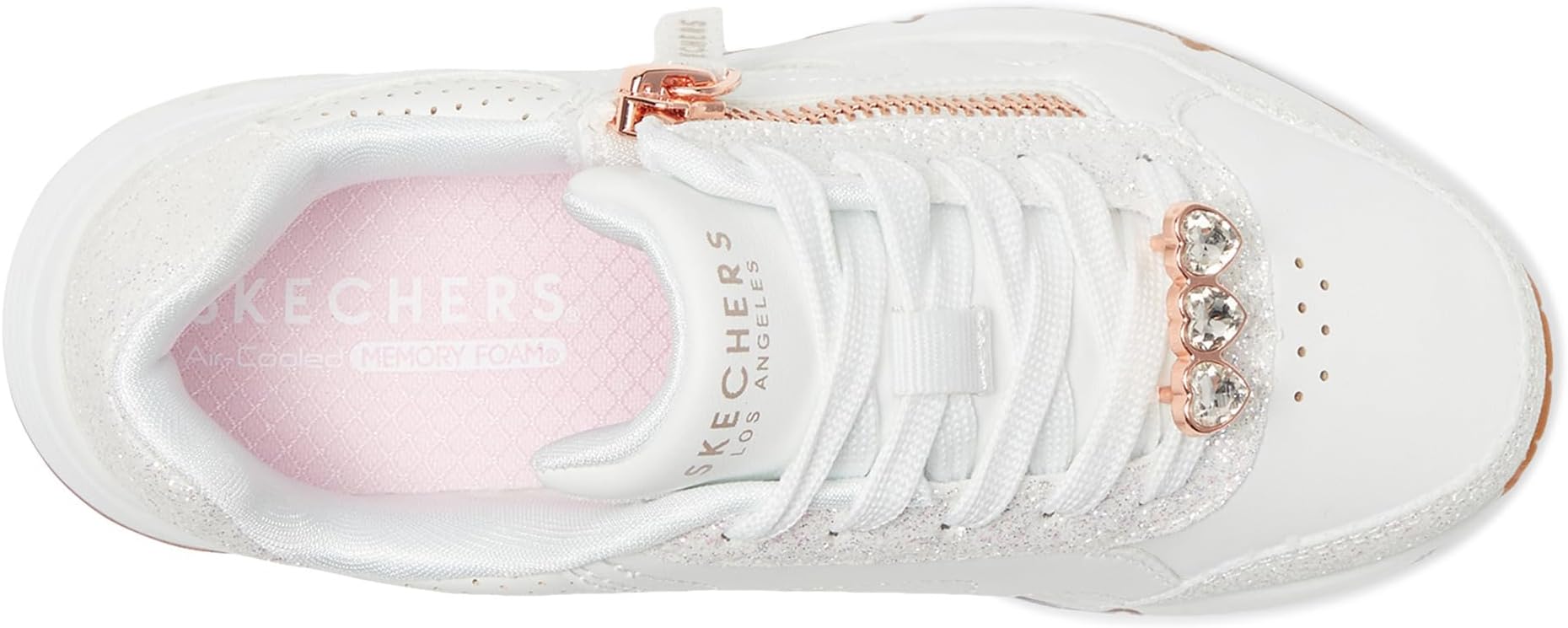 • Озаряжайте детскую площадку, выбрав Skechers KIDS Uno Gen1 310336L. Эти модные кроссовки на шнуровке с верхом из дюрабука, застежкой-молнией сбоку и фиксатором шнурка в форме сердечка с кристаллами, амортизирующей стелькой Skechers Air-Cooled Memory Foam и видимой подушкой безопасности Skech-Air в межподошве.