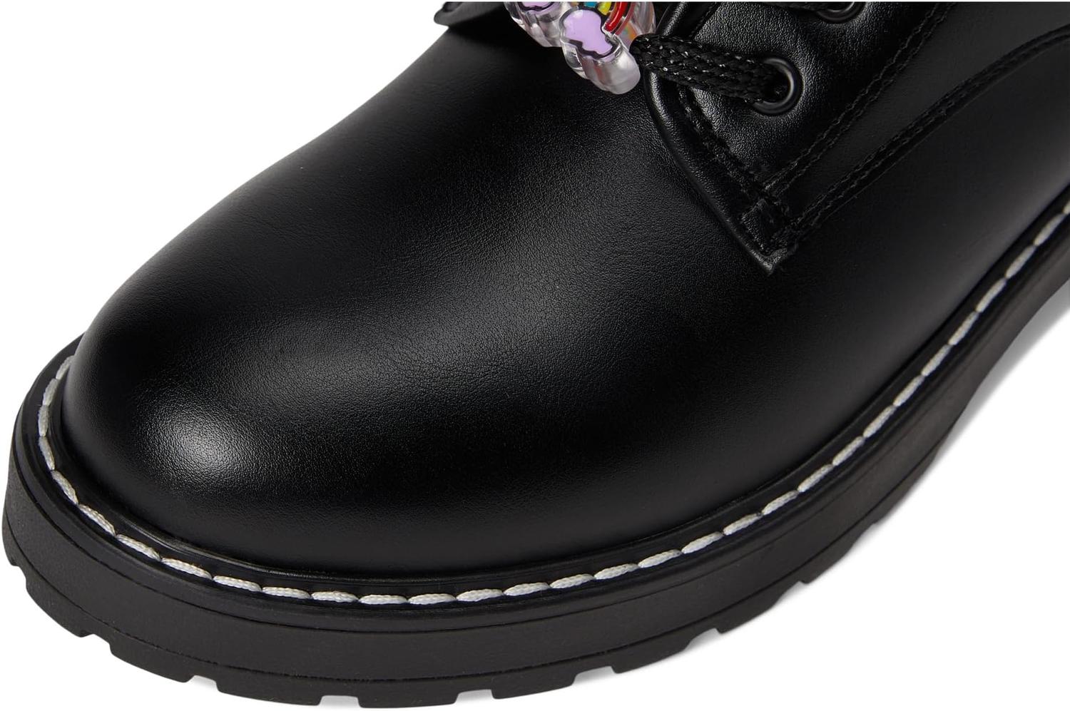 • Ботинки Steve Madden Kids Wriley с глянцевой лакированной отделкой и массивной подошвой выглядят игриво. Разноцветные подвески вдоль шнурков добавляют весёлый и индивидуальный штрих к этому выдающемуся боевому стилю.