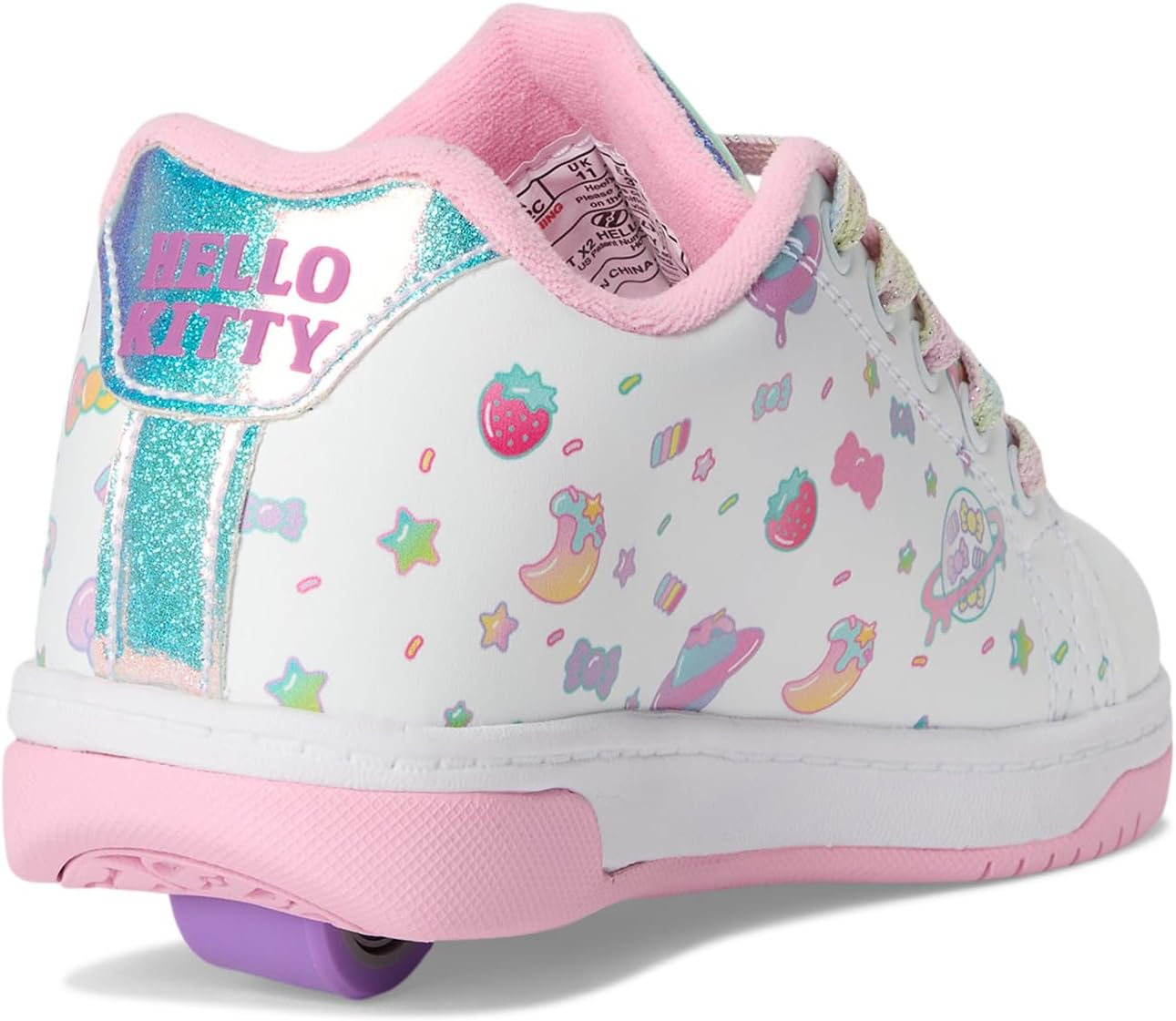 • Heelys и Hello Kitty объединились, чтобы подарить вашему ребёнку это уникальное сотрудничество. Эти кроссовки Heelys Split X2 Hello Kitty — это обувь на колёсах, стилизованная под Hello Kitty, со шнуровкой. Стелька из ЭВА и подкладка из полиэстера обеспечивают комфорт в течение всего дня. Эти низкие кроссовки с верхом из искусственного меха идеально подойдут к разным нарядам и стилям вашего ребёнка.