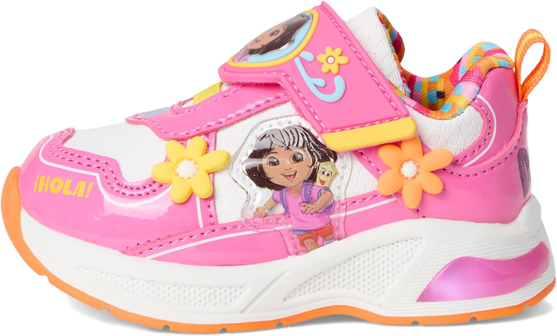 • Приключения встречаются со стилем в этих кроссовках Ground Up Dora The Explorer Light Up! Эти кроссовки с забавными персонажами и яркими огоньками, которые мигают при каждом шаге, идеально подходят для маленьких исследователей, которые всегда в движении.