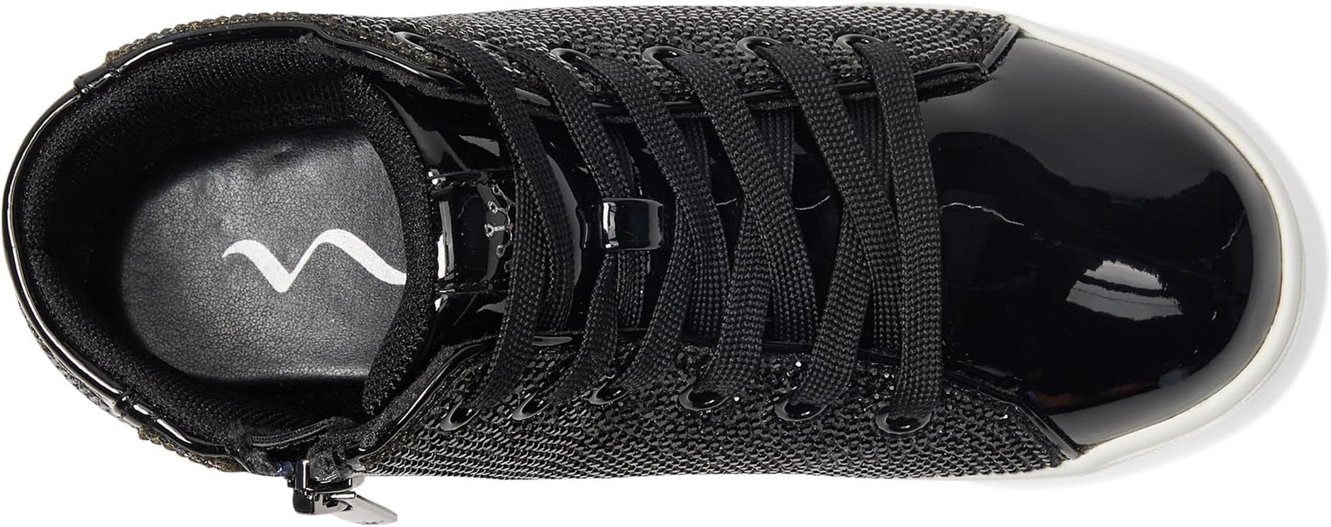 • Блестящие и стильные, Nina Kids Kula — это смелые высокие кроссовки, которые превратят повседневные наряды в яркие моменты. Этот стильный образ, украшенный мерцающими кристаллами, сверкающими люверсами и элегантной фирменной молнией, излучает индивидуальность. Шнуровка спереди и молния с внутренней стороны обеспечивают удобство, а круглый носок, стелька из пены с эффектом памяти и нескользящая полиуретановая подошва обеспечивают комфорт и безопасность. Kula привносит гламур в каждый свой шаг — от школьных дней до особых случаев.