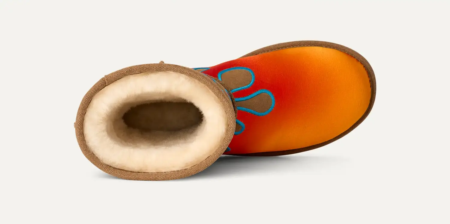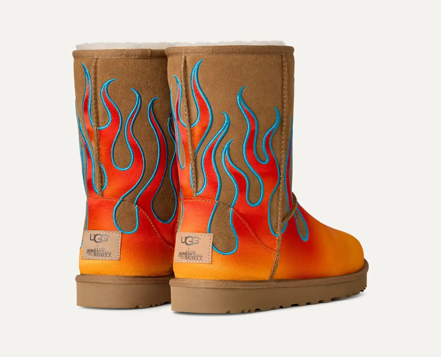 Эти ботинки – результат сотрудничества с дизайнером Джереми Скоттом. Впервые мы сотрудничали в 2017 году, чтобы переосмыслить наши классические силуэты через его неповторимый взгляд. Теперь мы возвращаемся с лимитированной серией ботинок Classic Short из этой коллекции, дополненных нашей фирменной подкладкой из замши и овчины и вышитым изображением пламени.