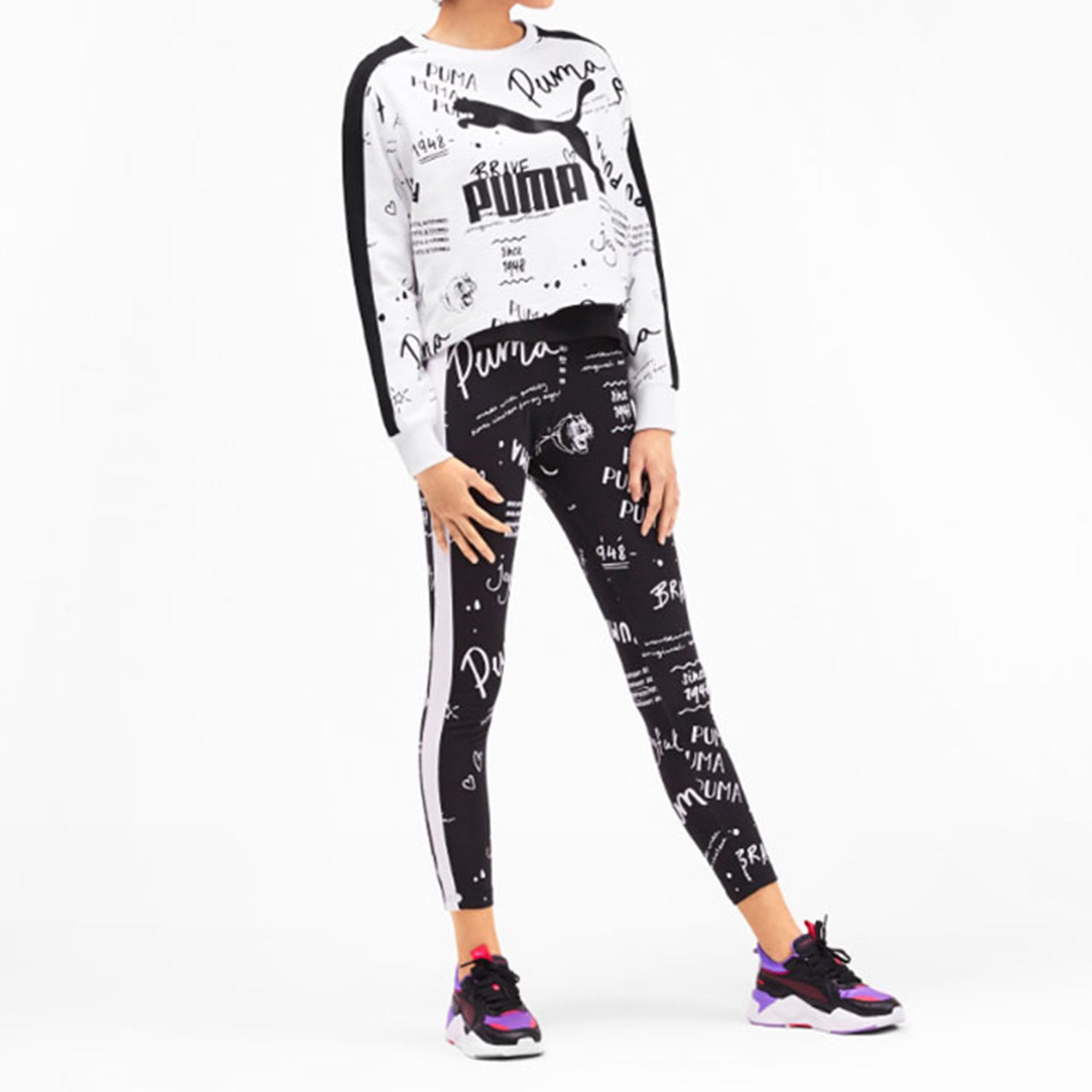 Топ (WMNS) PUMA Classics Logo Crew Aop Knit White