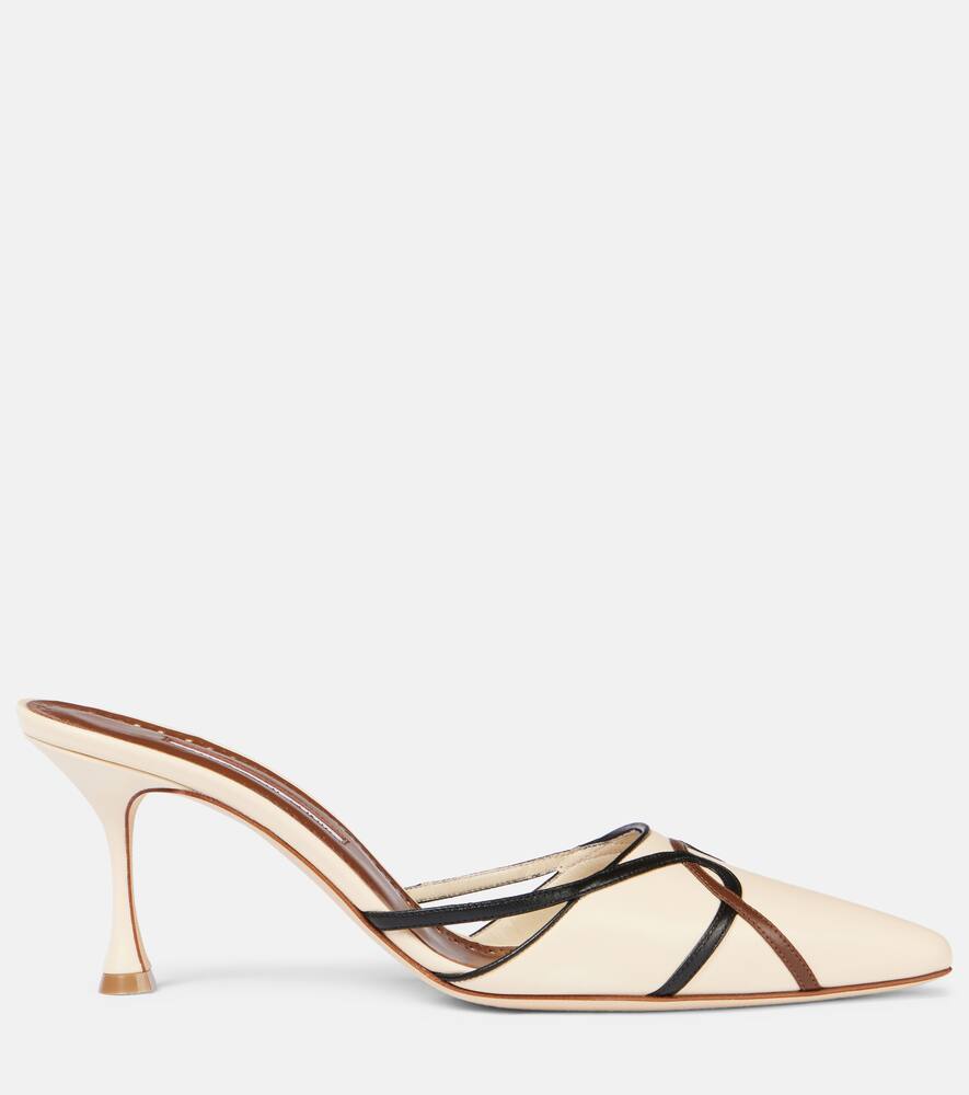 Мюли Ragheb 70 от Manolo Blahnik, выполненные из гладкой кожи, имеют скульптурный каблук и изящный острый носок — непринужденное сочетание современной элегантности и вневременного мастерства для повседневного и вечернего гардероба.