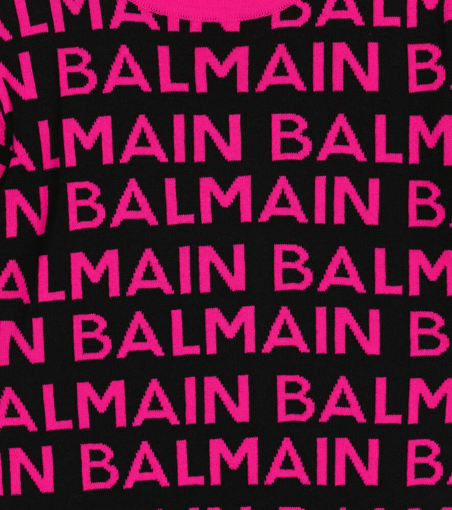 Это трикотажное платье создано для маленьких поклонников Balmain Kids. Оно связано из мягкой хлопковой пряжи и украшено логотипом в технике интарсии по всей поверхности и контрастной отделкой подола.
