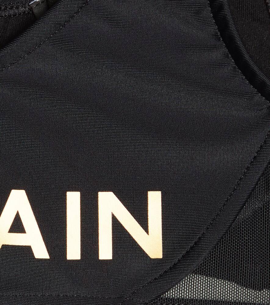 Balmain Kids доказывает, что никогда не рано инвестировать в стильные вещи, представив этот укороченный топ. Изделие выполнено из полупрозрачной сетки, застёжки-молнии сзади и украшено золотистыми буквами логотипа.