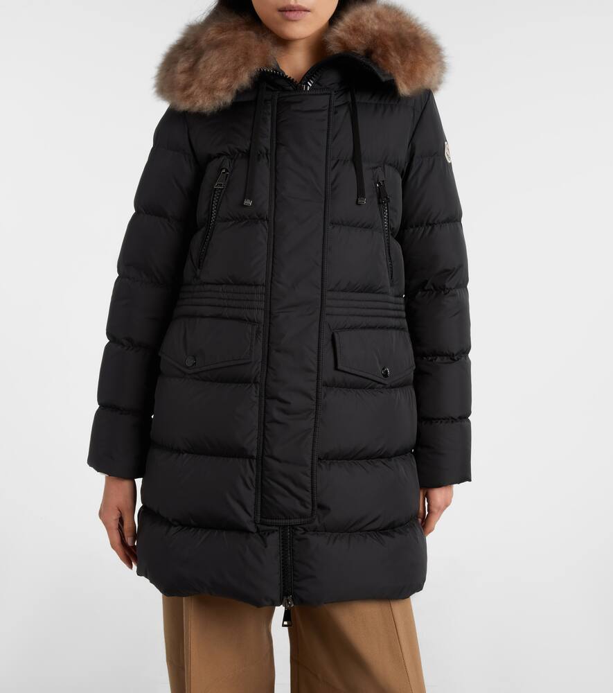 Афроти пуховик с капюшоном и отделкой из овчины Moncler, 99M
