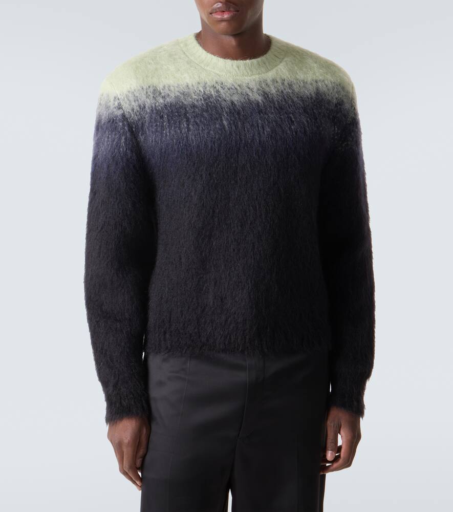 Изысканный минимализм Jil Sander характеризуется нейтральными тонами, чистыми линиями и чётко расположенными деталями. Этот свитер, выполненный в фирменном стиле, отличается цветовым градиентом, выполненным на смеси мохера и шерсти.