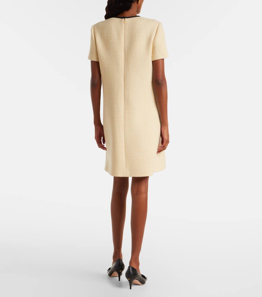 Мини-платье из твида с шерстью и бантиком Valentino, Almond/Nero