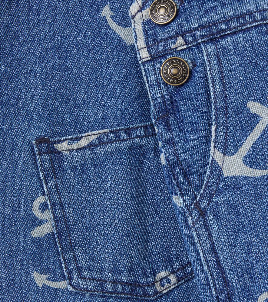 Маленьким ценителям вкуса понравятся бесконечно игривые модели от Konges Sløjd. Джинсы Magot сшиты из чистого хлопкового денима с принтом и пуговицами вдоль внутреннего шва.