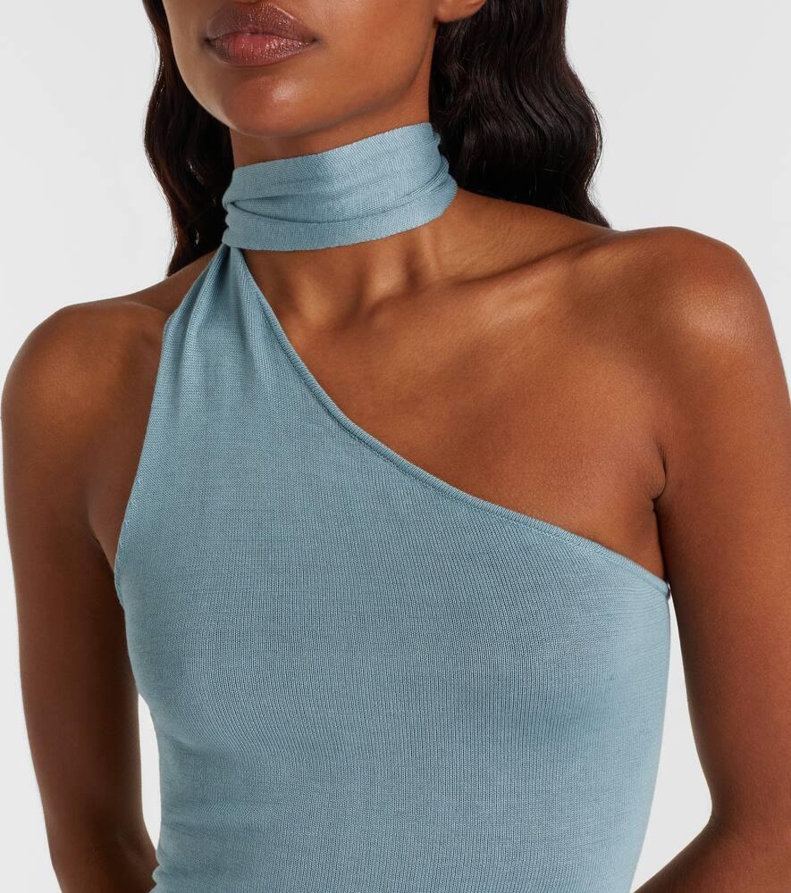 Бренд Aya Muse, разработанный в Лос-Анджелесе, зарекомендовал себя как место, где можно найти стильные базовые вещи и вдохновляющие вечерние наряды. Это мини-платье из джерси с добавлением шёлка имеет рюши и украшено шарфом на вырезе, который элегантно ниспадает на спину.